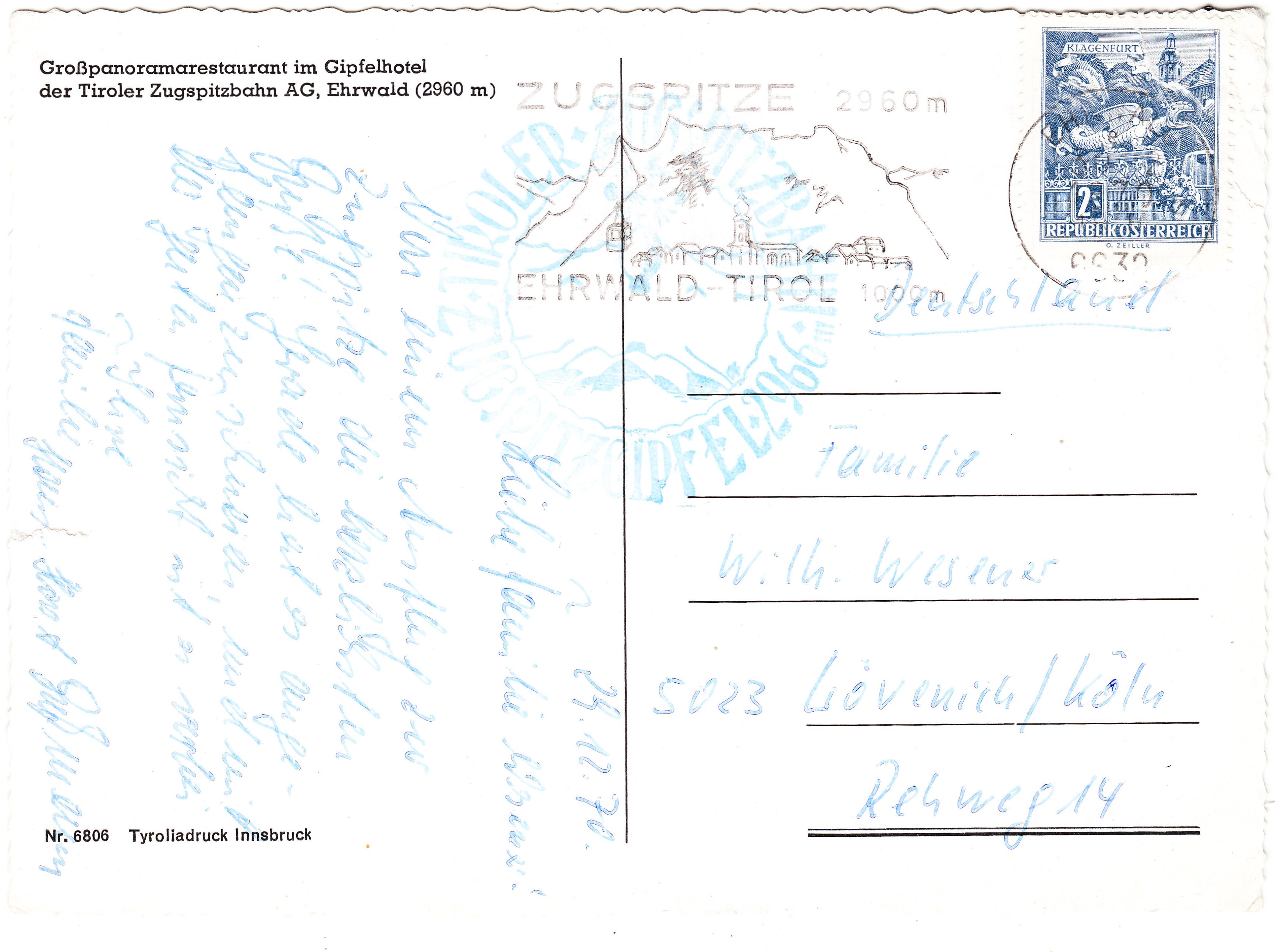 Der Werbeeinsatz dieses Maschinenstempels aus Ehrwald zeigt uns eine Gondel dieser berühmten Seilbahn: