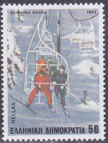 Auf dieser Marke aus Griechenland ist ein Sessellift abgebildet.