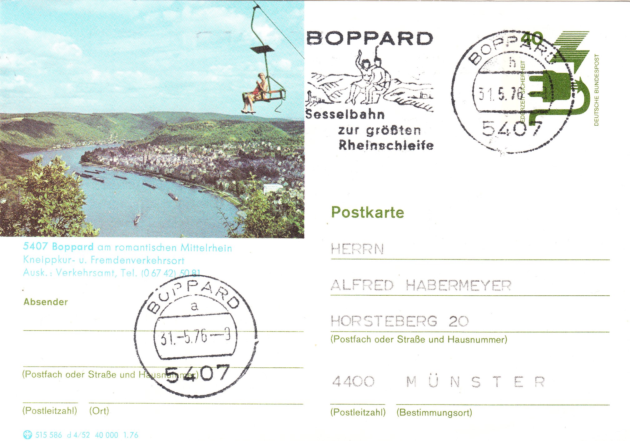 Hier eine Ganzsache mit zum Motiv passendem Bildzudruck sowie Werbeeinsatz im Maschinenstempel aus dem Jahre 1976: