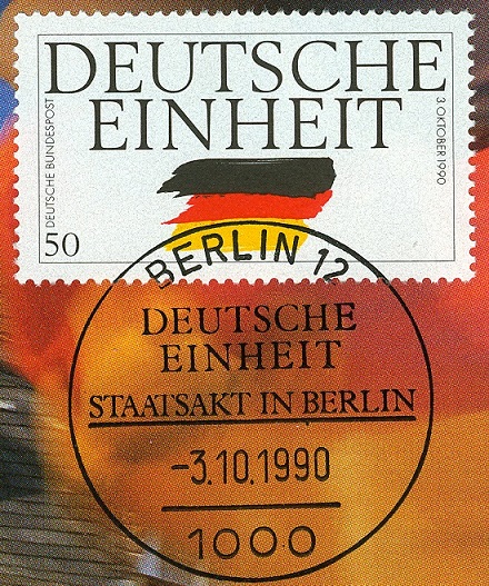 Zur Einheit gab es auch einen offiziellen Staatsakt in Berlin. Dieser Sonderstempel erinnert daran.