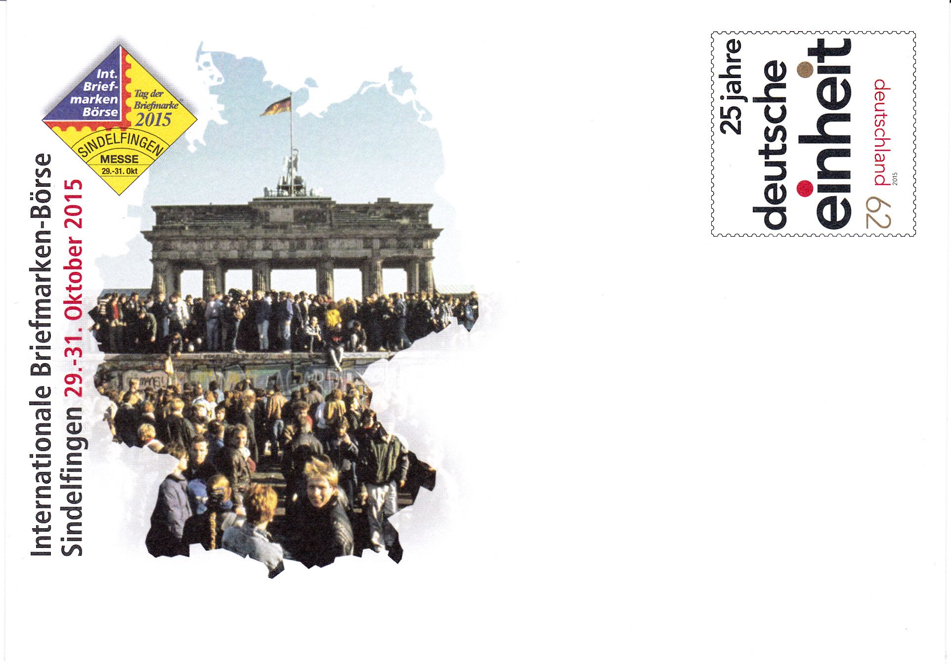 Gelaufene Blankoganzsache mit Wertstempel "25 Jahre Deutsche Einheit" mit dazu passendem Sonderstempel aus Mainz vom 3.10.2015 zu einer Rang 3 Ausstellung.