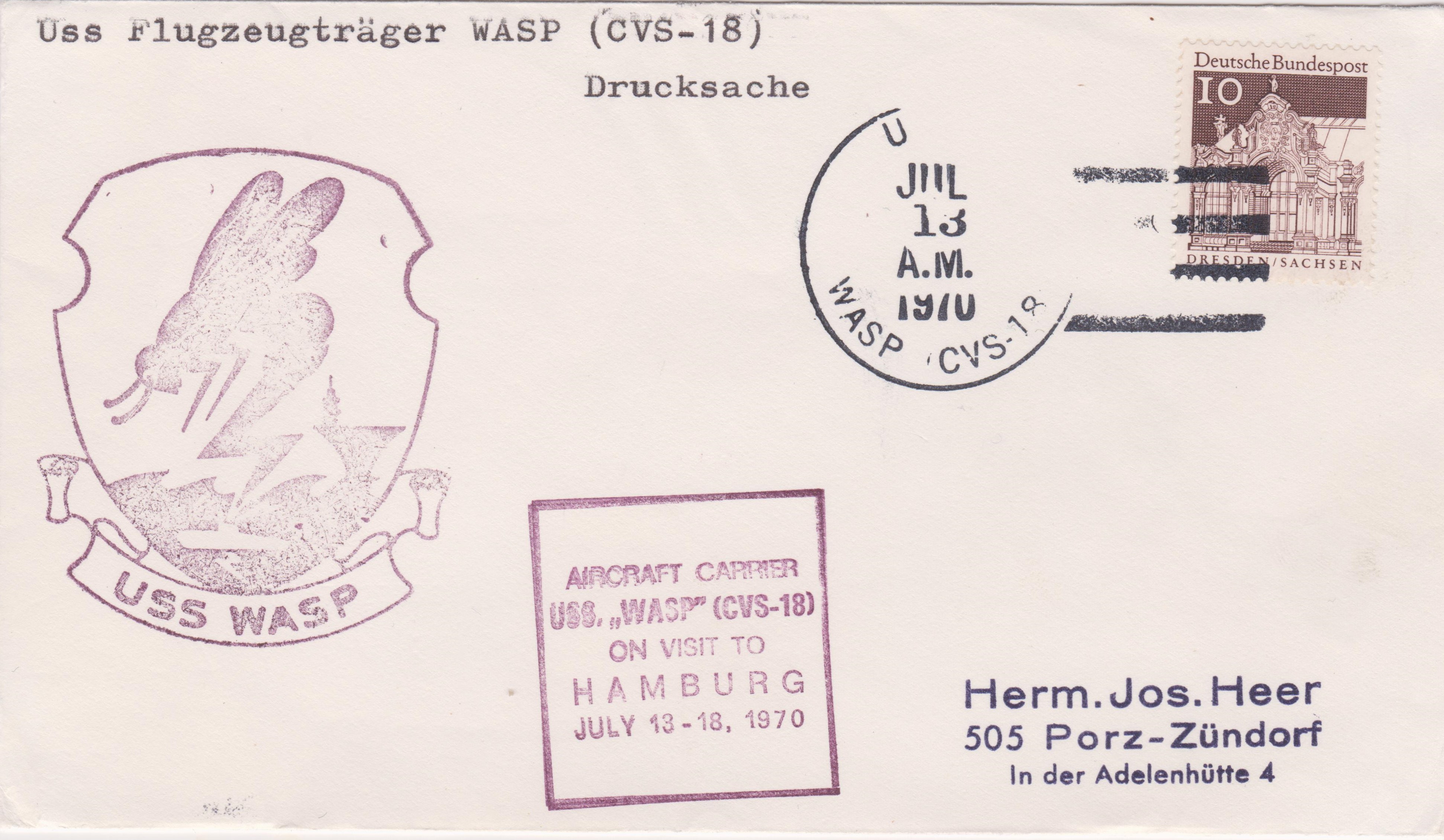 Dieser Beleg wurde am 17.07.1970 über den Flugzeugträger USS WASP (CVS-18) geleitet: