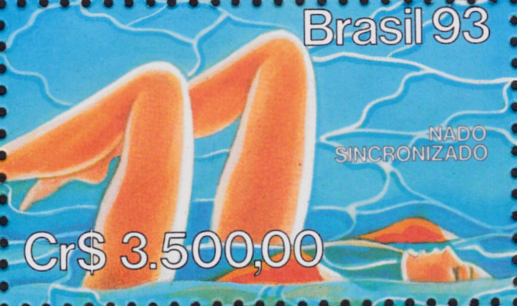 Hier kann ich eine Marke aus Brasilien (MiNr 2512) zeigen, die im Markenbild eine Synchronschwimmerin zeigt.