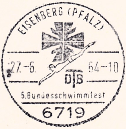 Sonderstempel vom 27.6.1964 aus Eisenberg (Pfalz) zum 5. Bundesschwimmfest des DTB.