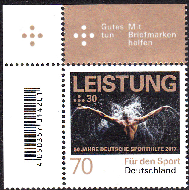Die Marke erschien mit drei weiteren Marken mit den Bewegungsabläufen der drei anderen offiziellen Schwimmsportarten in Viererblockanordnung zusammenhängend gedruckt.