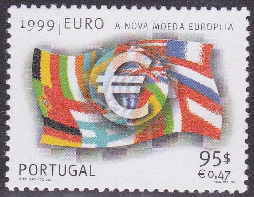 In Portugal erschien bereits 1999 eine Marke (MiNr 2326) zur Einführung des Euro als Recheneinheit im Zahlungsverkehr. Die Marke ueigt die Flaggen der EU-Mitglieder und ein Euro-Zeichen.