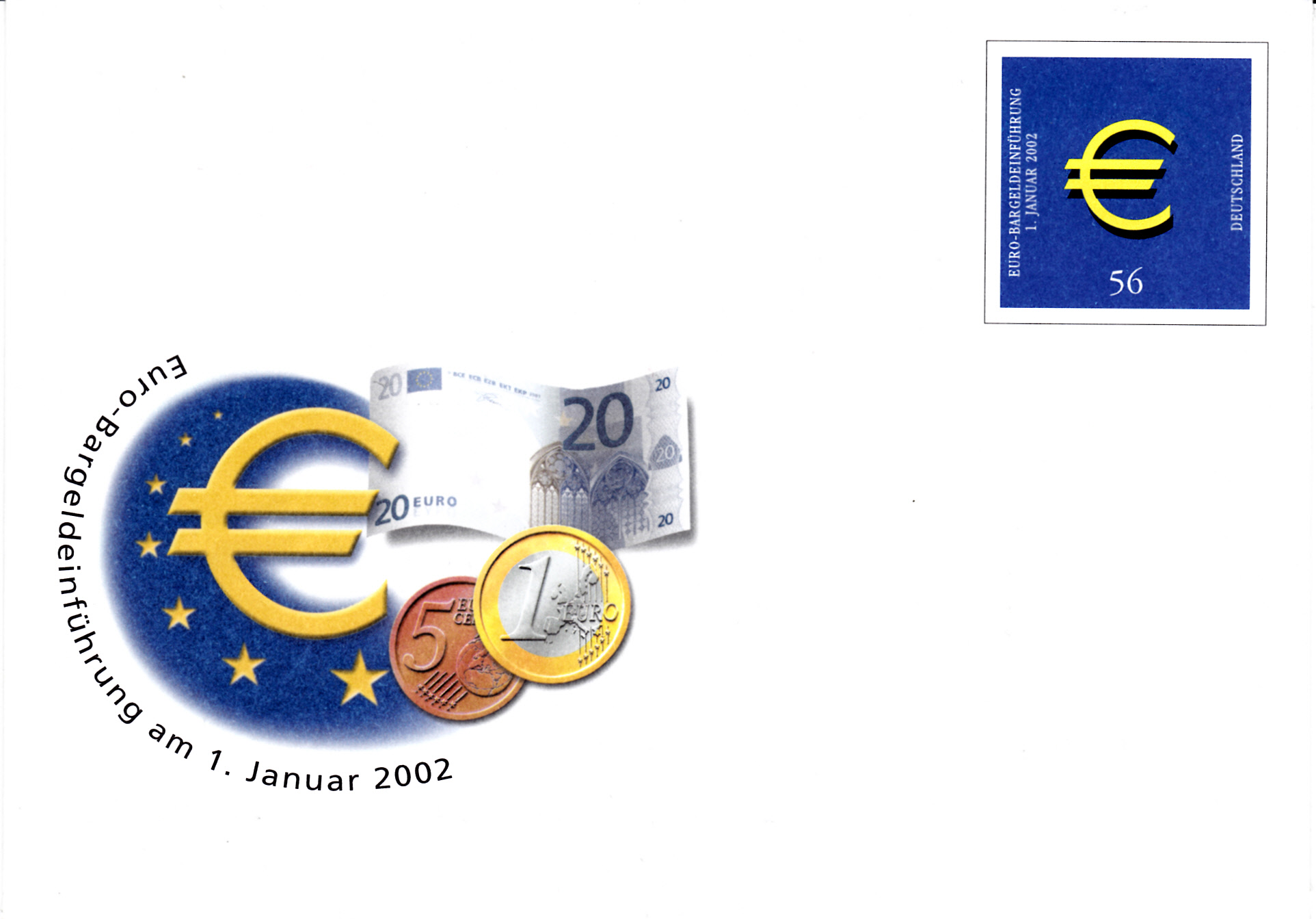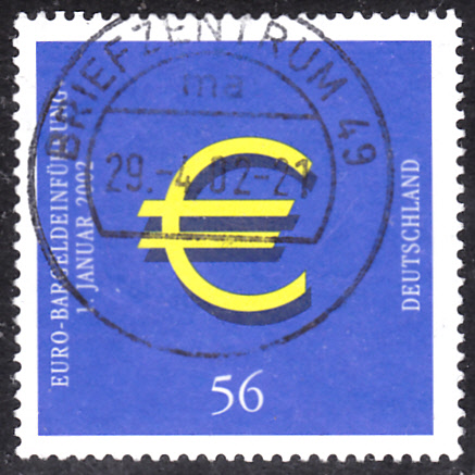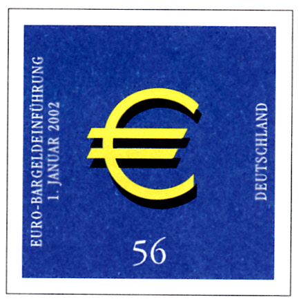 Bei der Deutschen Post ist ebenfalls eine Marke (MiNr 2234) zur Einführung der Euro-Münzen und -Banknoten erschienen.