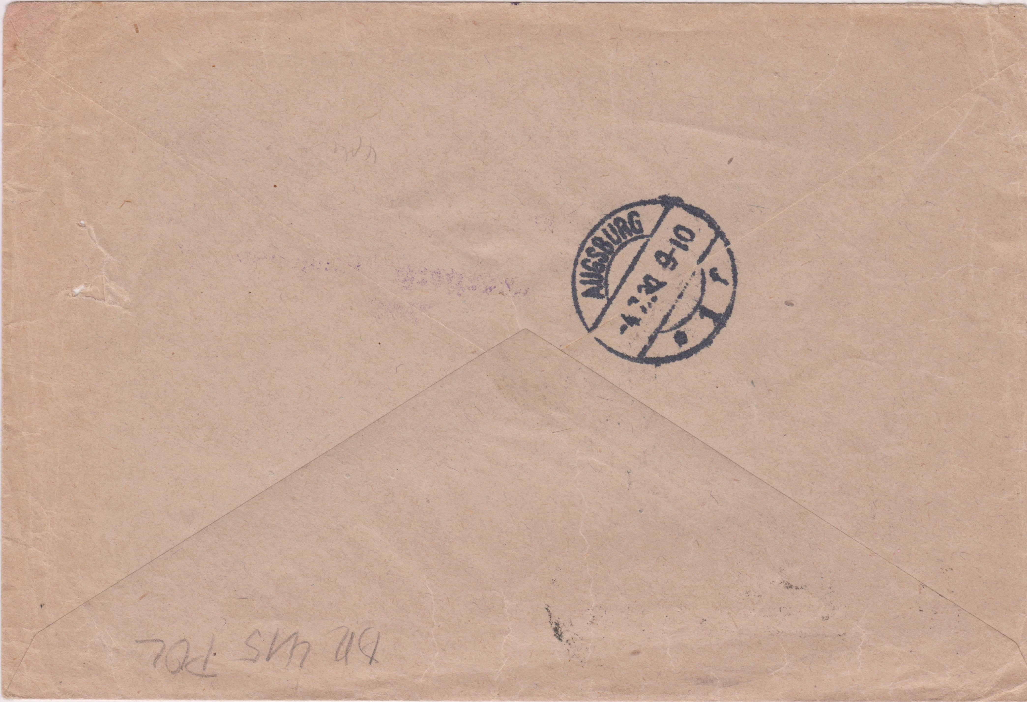 Laut rückseitig abgeschlagenem Ankunftstempel kam der Brief am 04.07.1930 in "AUGSBURG 1" an.