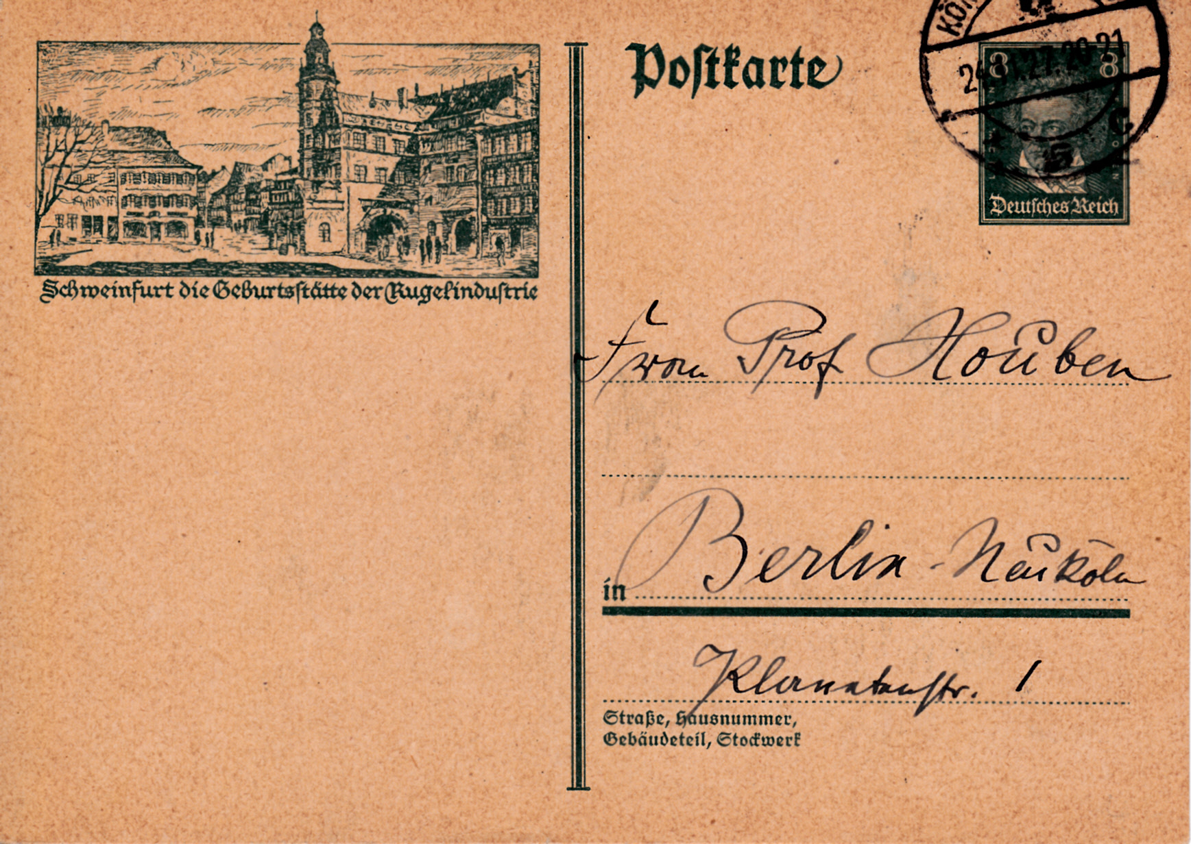 Foren-Übersicht Fragen und Diskussion Deutschland Deutschland bis 1945 Deutsches Reich 1872 - 1945 Bildpostkarten 1927 Wertstempel Berühmte Deutsche 8Pf