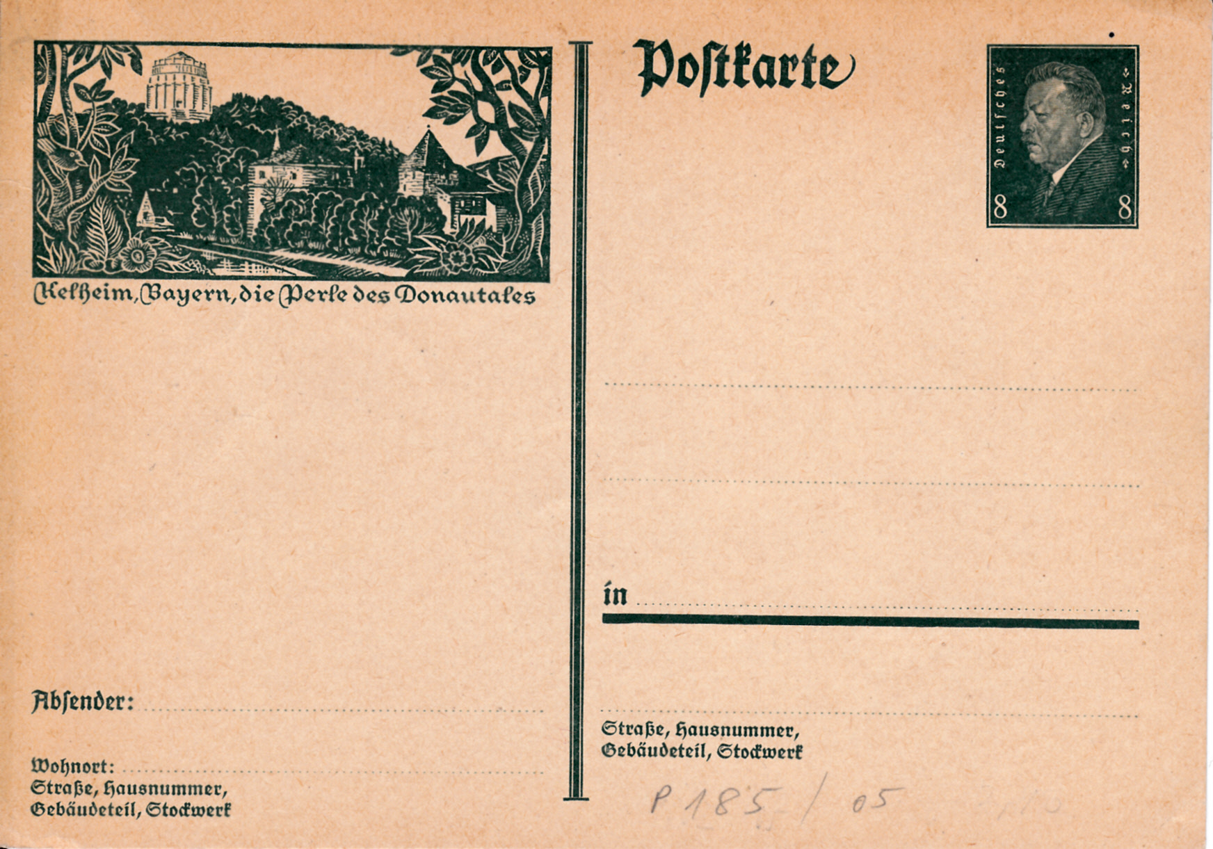 Auf der Bildpostkarte mit der MiNr P 185/05 wird eine Ansicht aus Kelheim (Bayern) gezeigt.