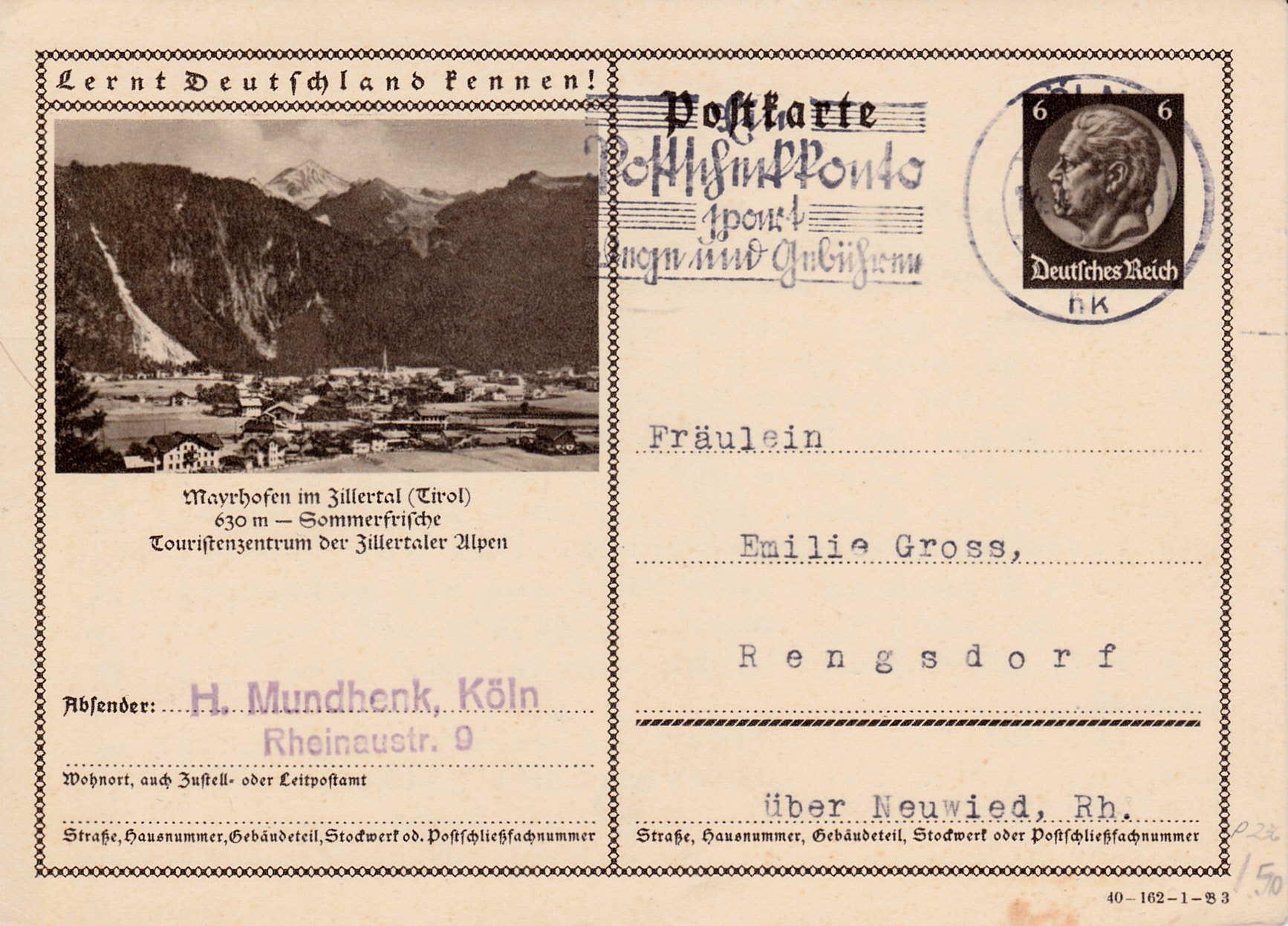 Auf dieser Bildpostkarte (Serie 162 Bild 3) stellt sich Mayrhofen im Zillertal als Touristenzentrum der Zillertaler Alpen vor.