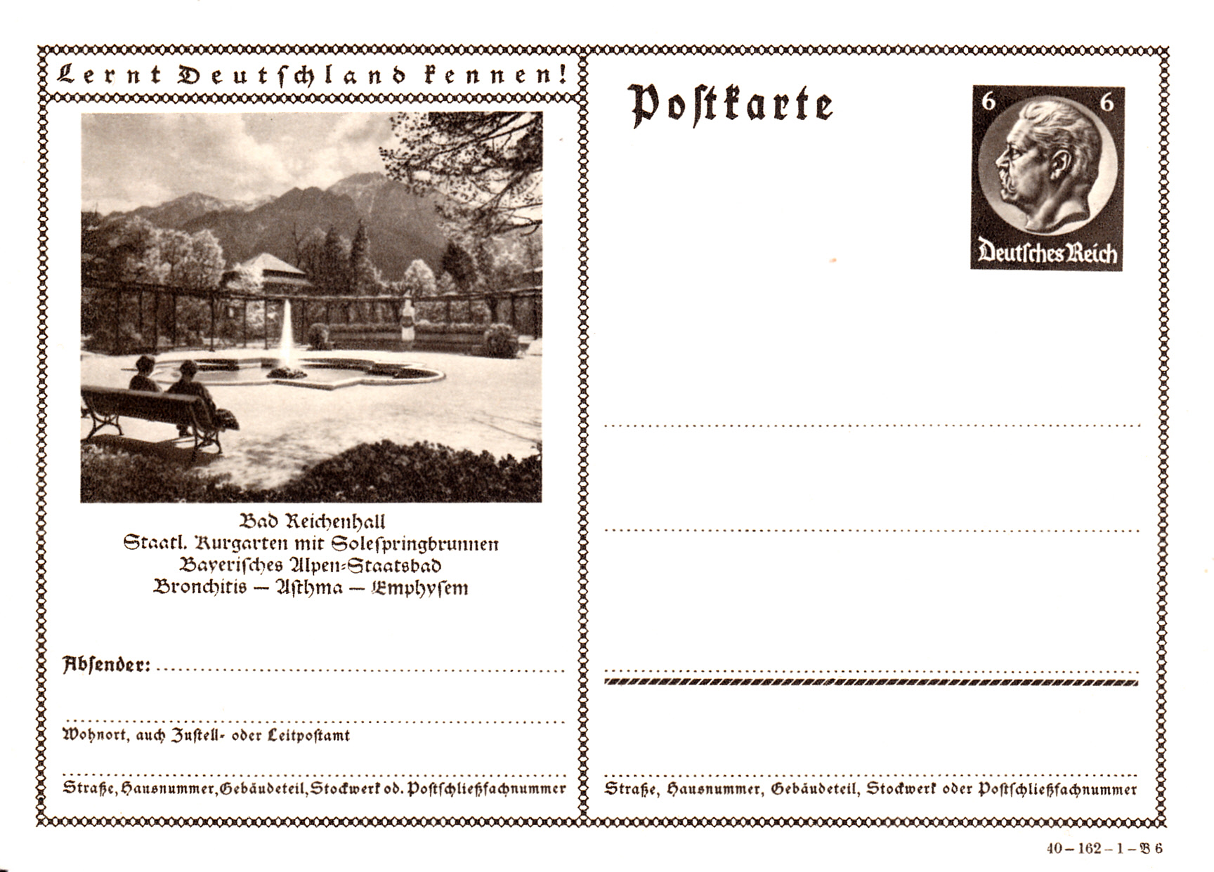 Auf einer zweiten Karte (Serie 162 Bild 6) von Bad Reichenhall ist ein Foto aus dem Kurgarten zu sehen.