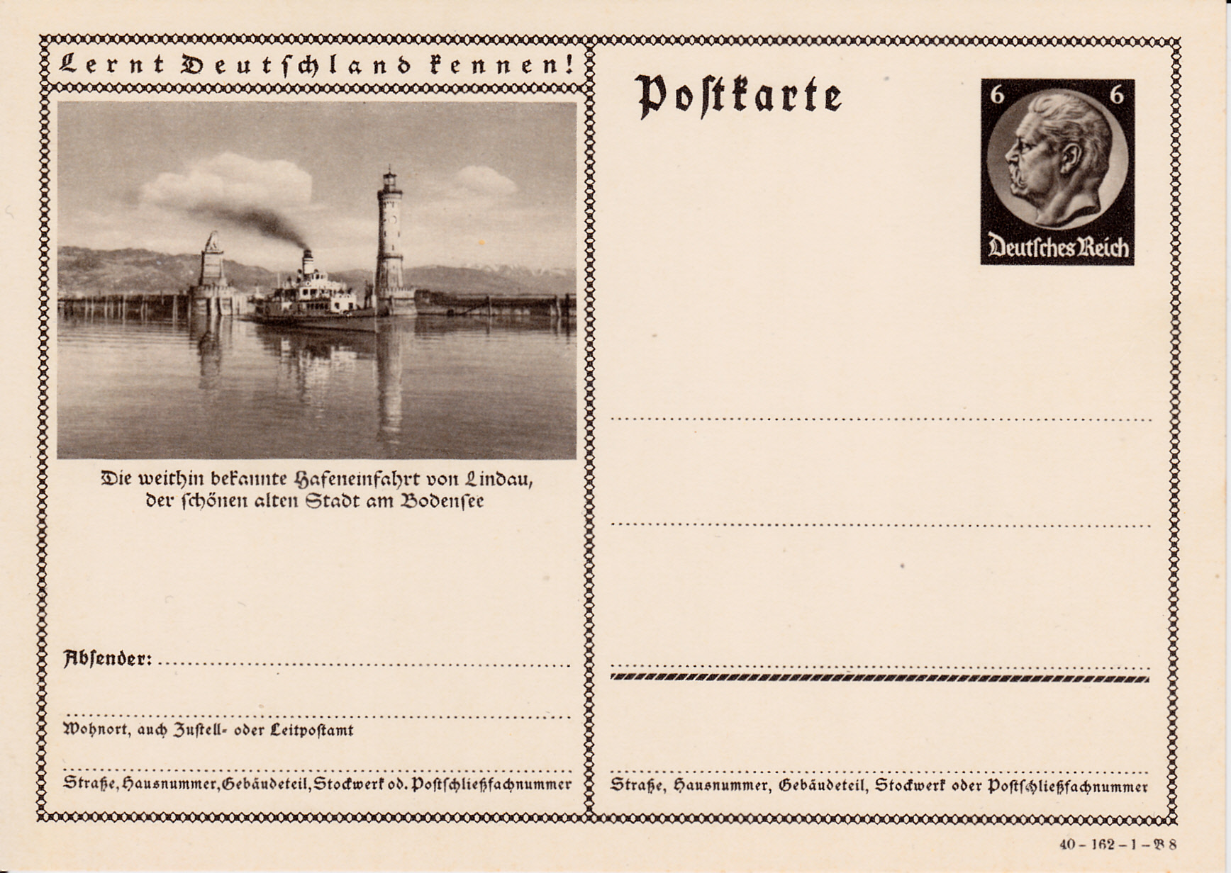 Lindau am Bodensee zeigt auf einer Karte (Serie 162 Bild 8) seine Hafeneinfahrt mit dem Leuchtturm.