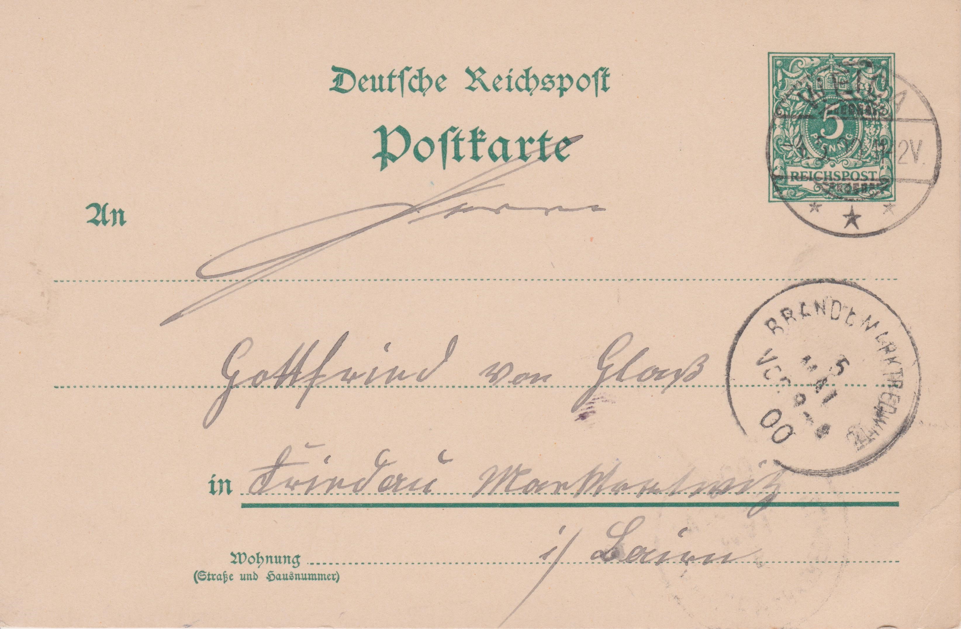 Ganzsache mit Eindruck 5 Pf Freimarken Wertziffer und Krone im Perlenoval, ohne Druckvermerk unten rechts, mit Punktlücke r 5+10: