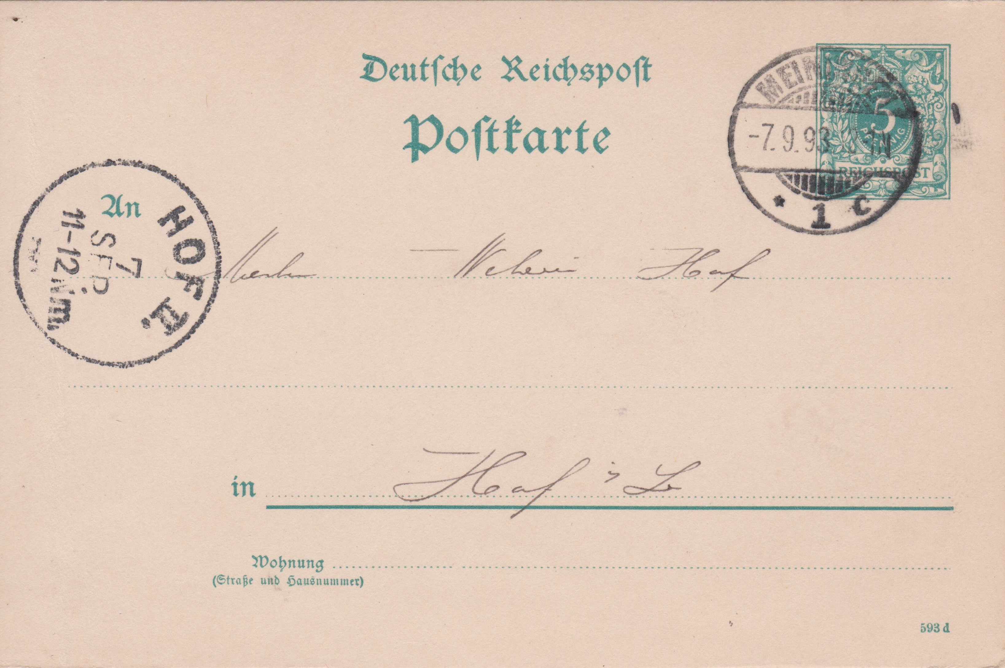 Ganzsache Deutsches Reich P 30 I mit Eindruck 5 Pf Freimarken Wertziffer und Krone im Perlenoval, Druckvermerk 593 f unten rechts: