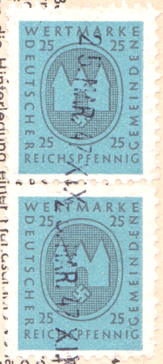 Bei solchen Wertzeichen mit der Inschrift "WERTMARKE DEUTSCHER GEMEINDEN" handelt es sich um Gebührenmarken aus der Zeit des Dritten Reiches: