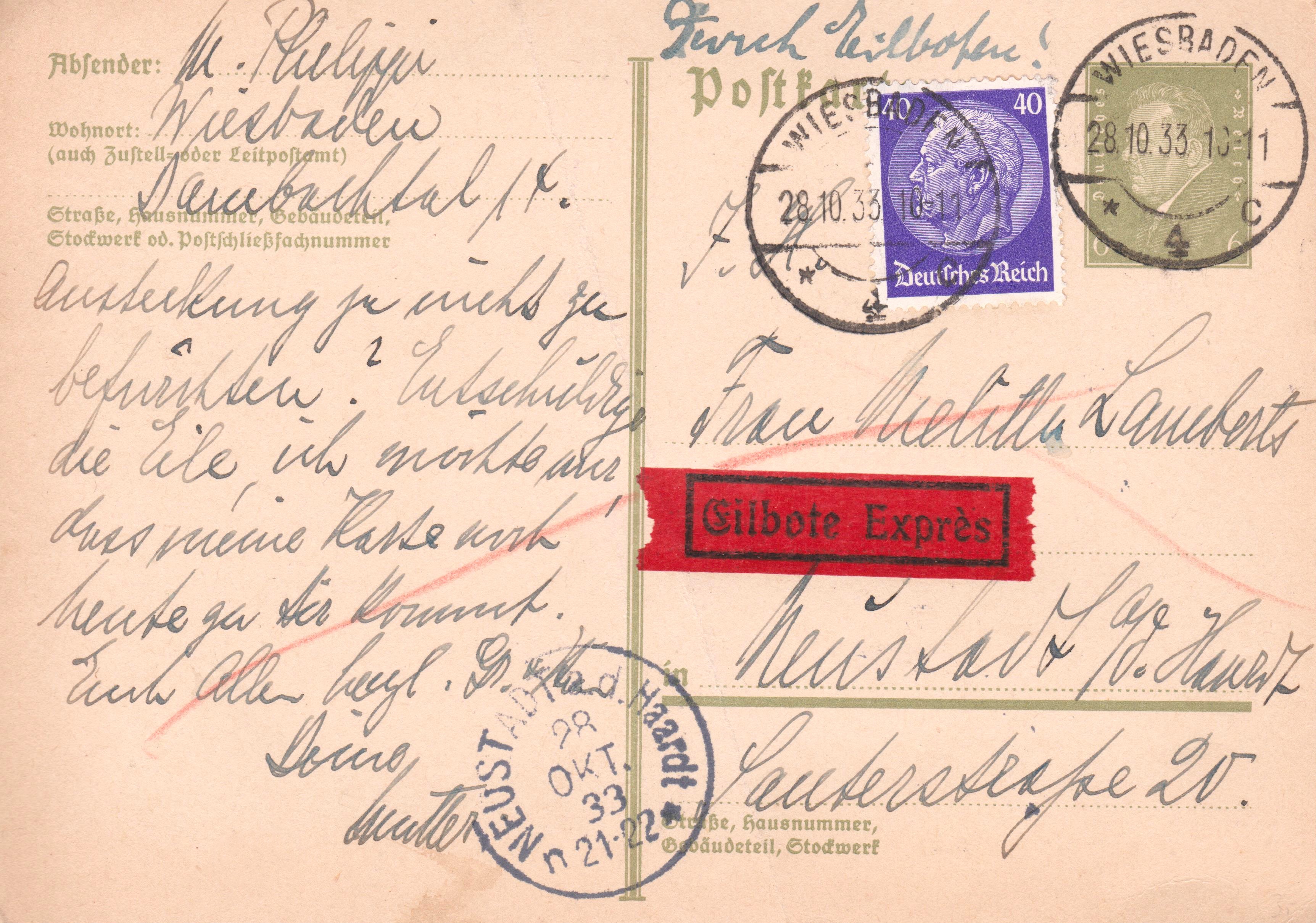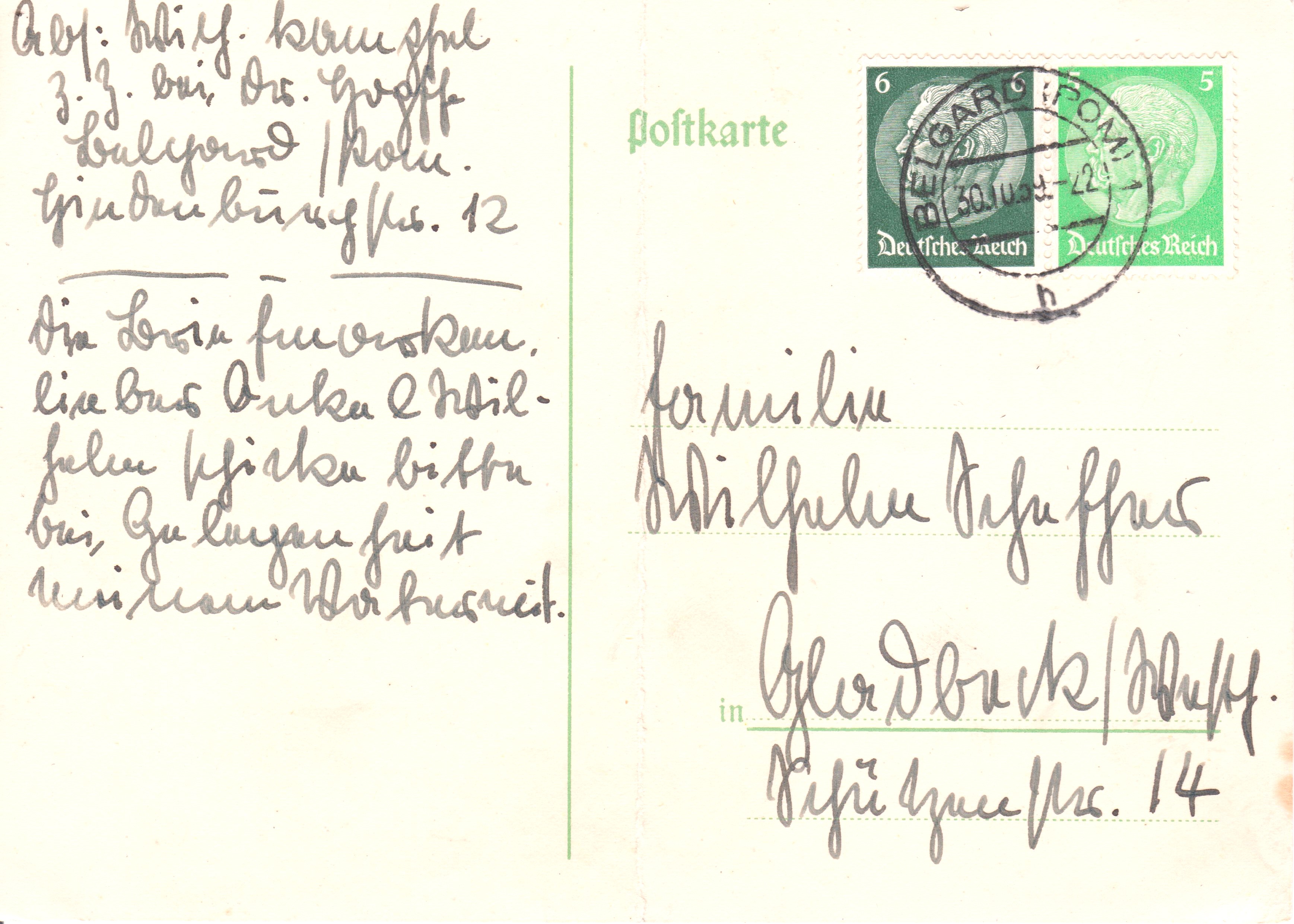 Eine Postkarte im Fernverkehr kostete nicht 5 Pf Porto, sondern 6 Pf!