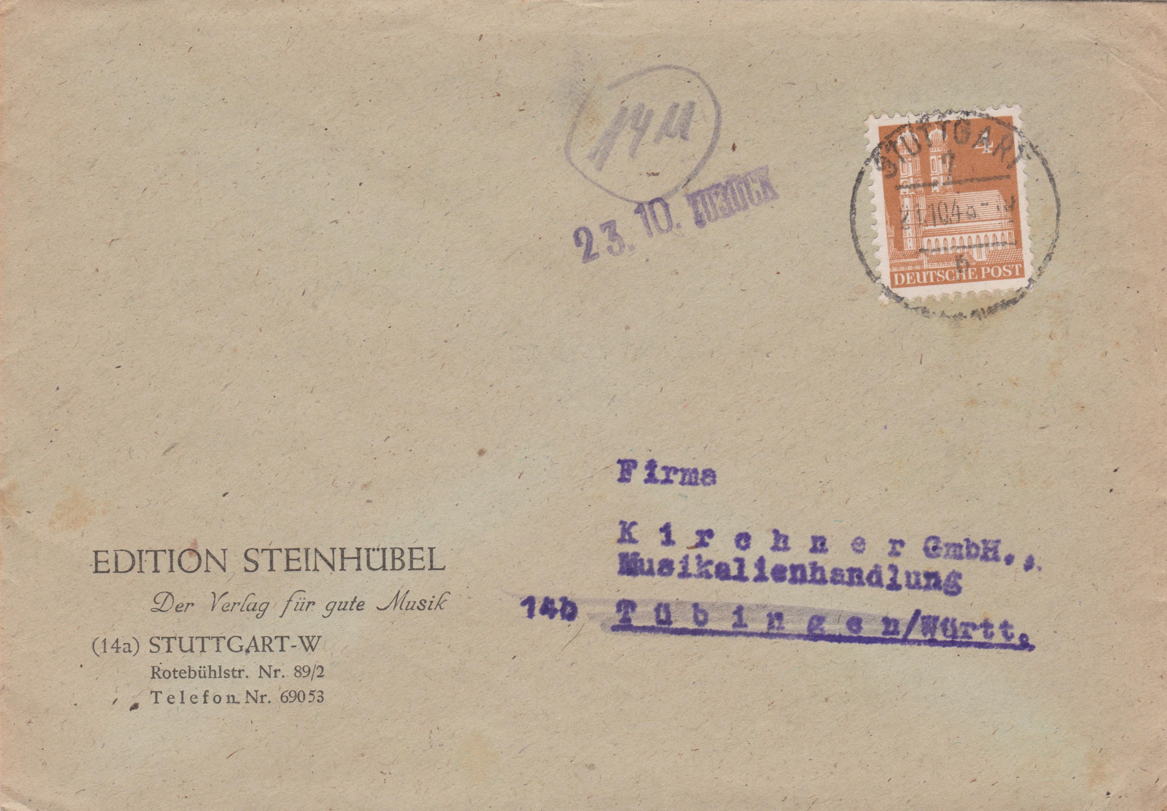 Einzelfrankatur 12 Pf entsprechend der Portostufe für einen Brief im Fernverkehr, entwertet am 10.04.1945 mit Tagesstempel "STUTTGART 1 bf STADT DER AUSLANDSDEUTSCHEN":