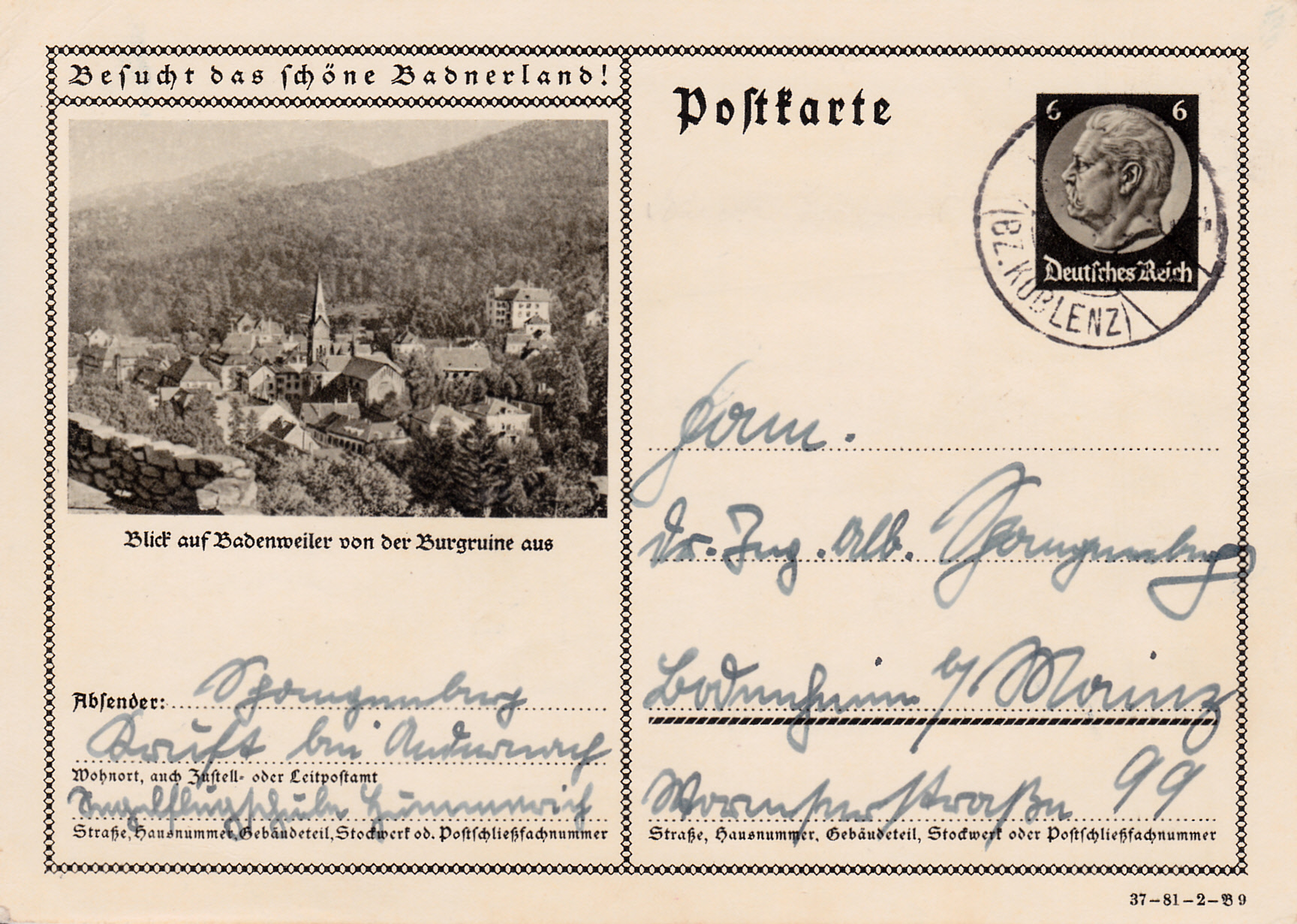 Die Karte mit Blick auf Badenweiler folgt hier noch mit dem Druckvermerk 37-81-2-B 9 (Serie 81 Druckplatte 2 Bild 9).