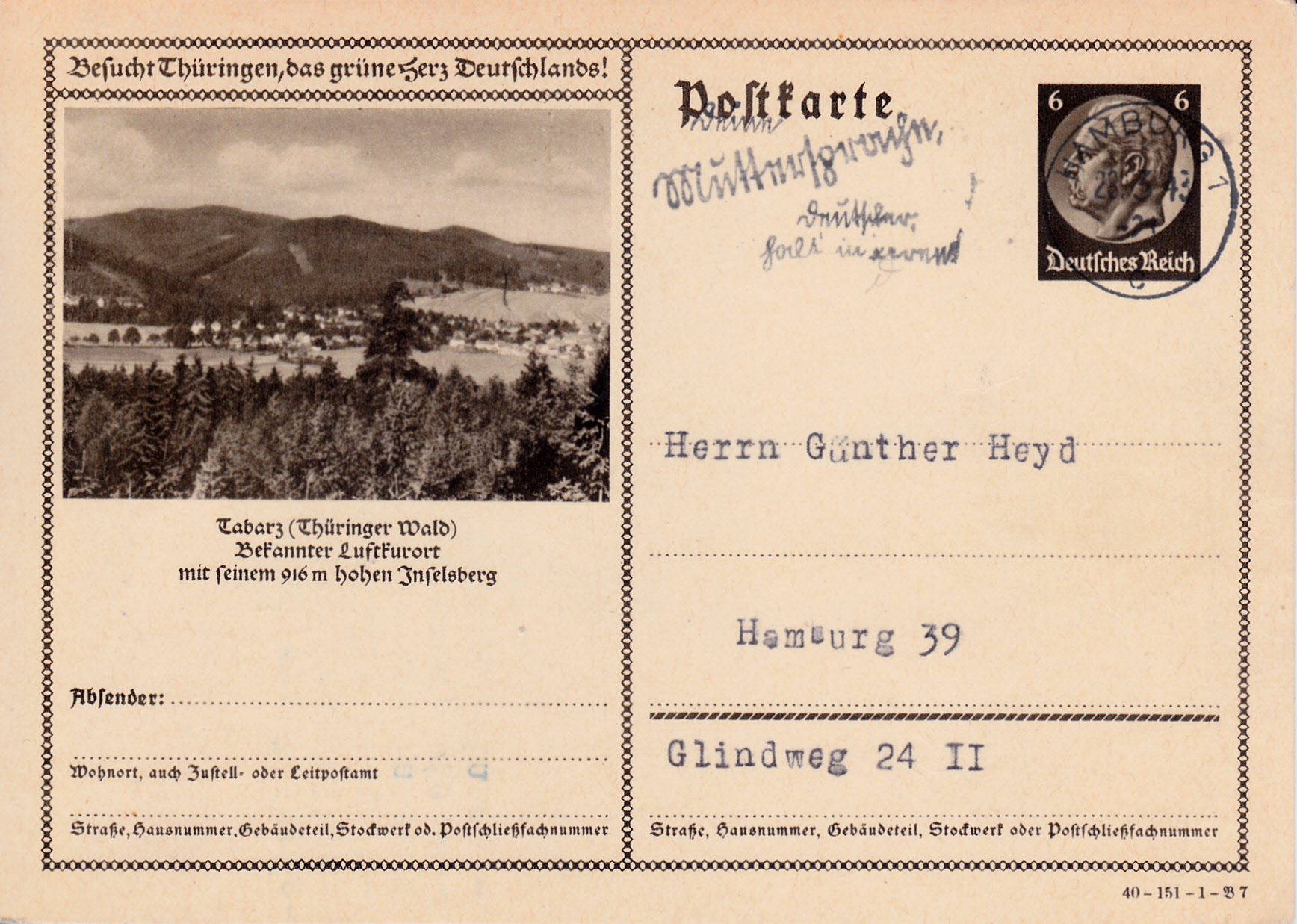 Einen Blick auf Tabarz (Thüringer Wald) können wir auf dieser Karte (Serie 151 Bild 7) sehen.