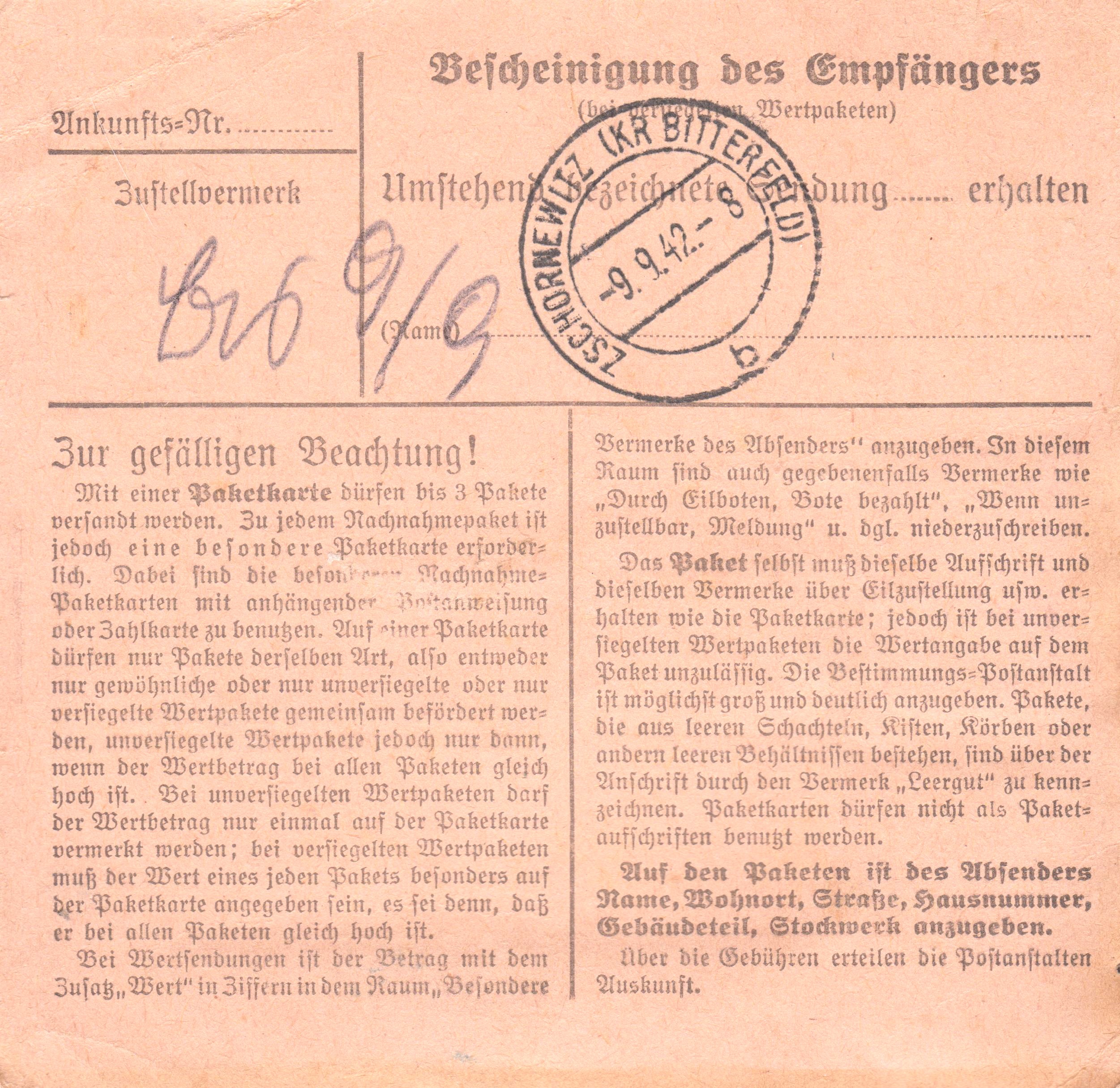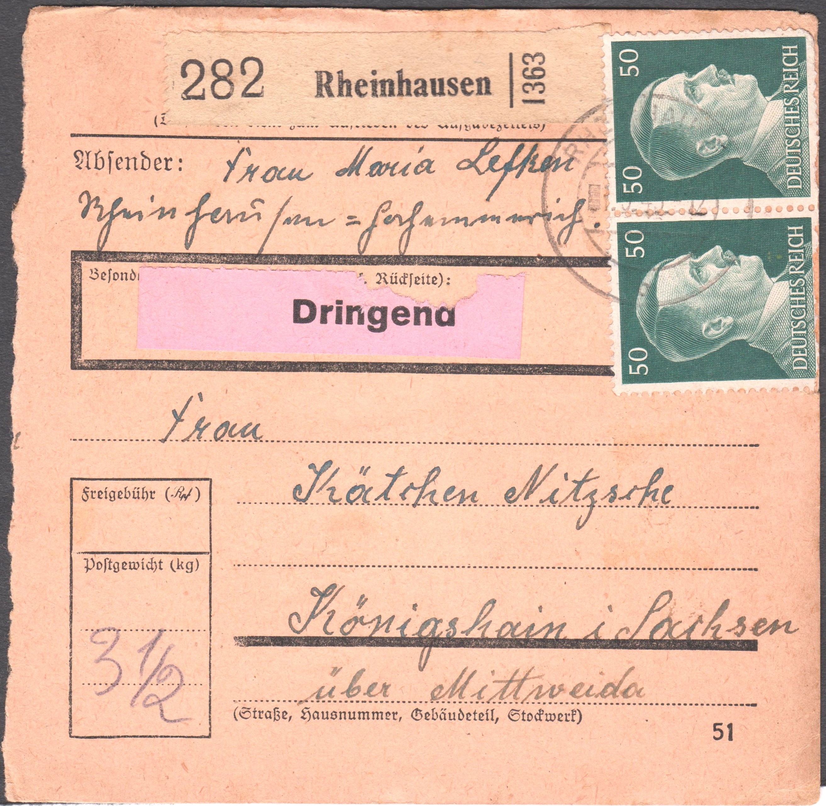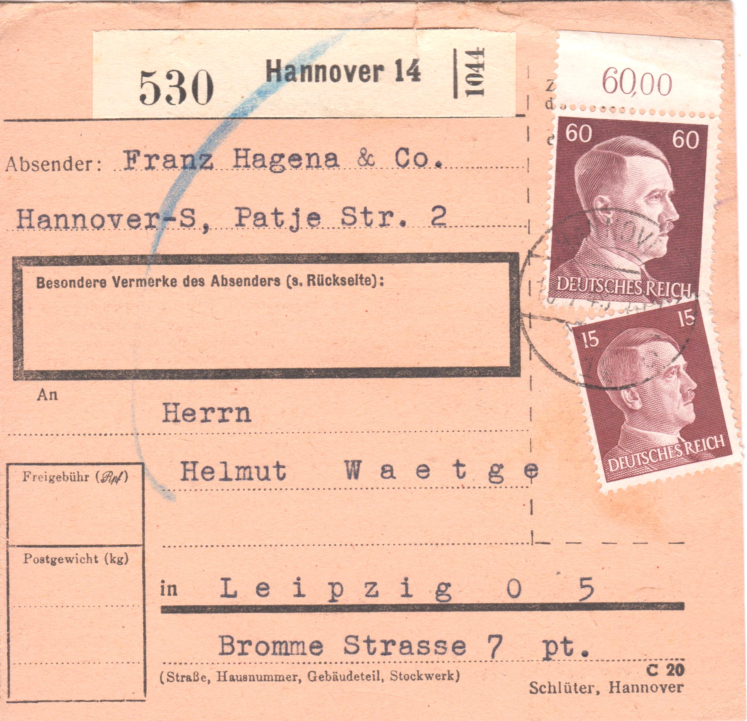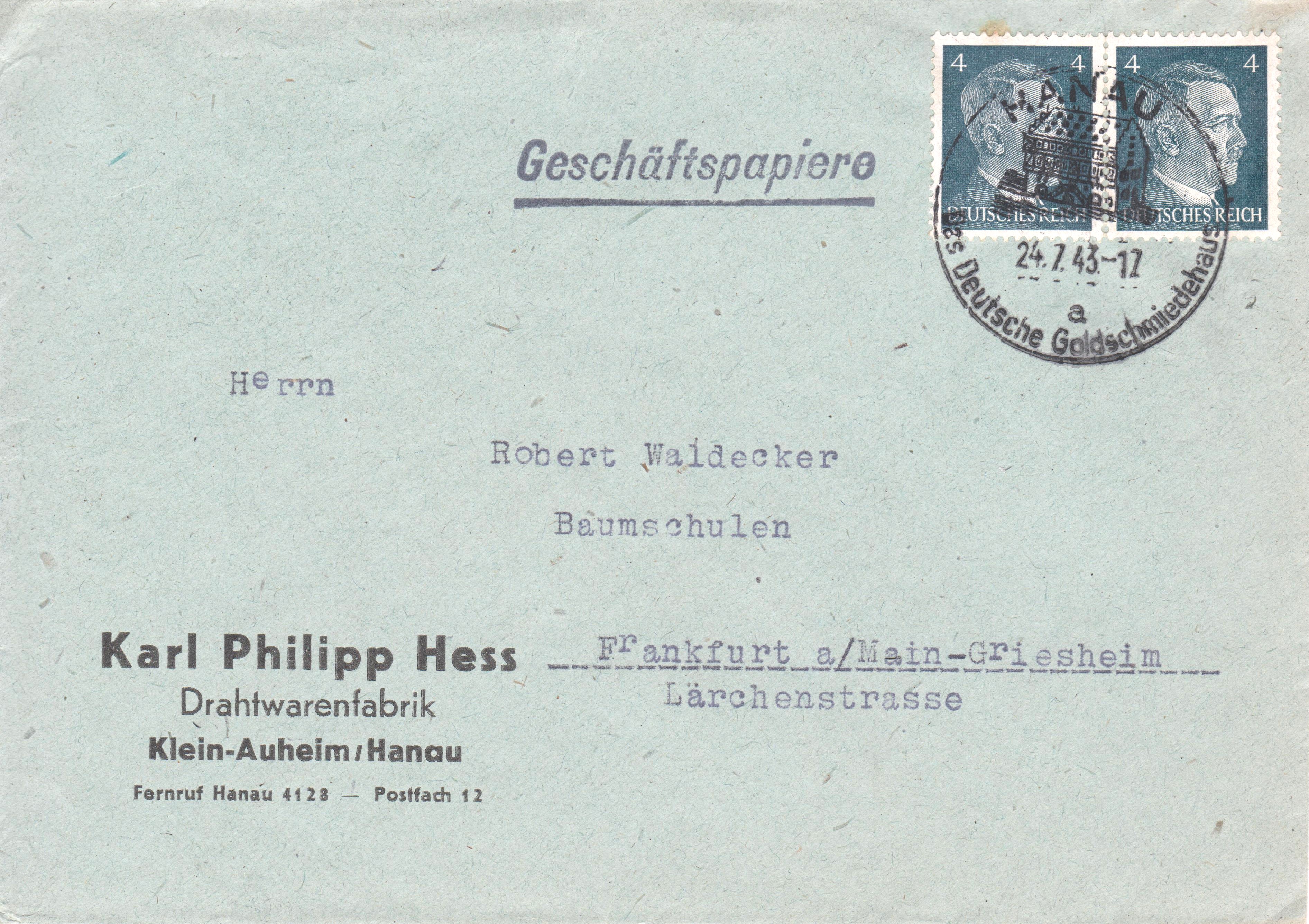 Das Porto setzt sich zusammen aus dem Porto für einen Brief im Fernverkehr, 12 Pf, plus 60 Pf als Wertbrief plus 40 Pf für die Eilzustellung