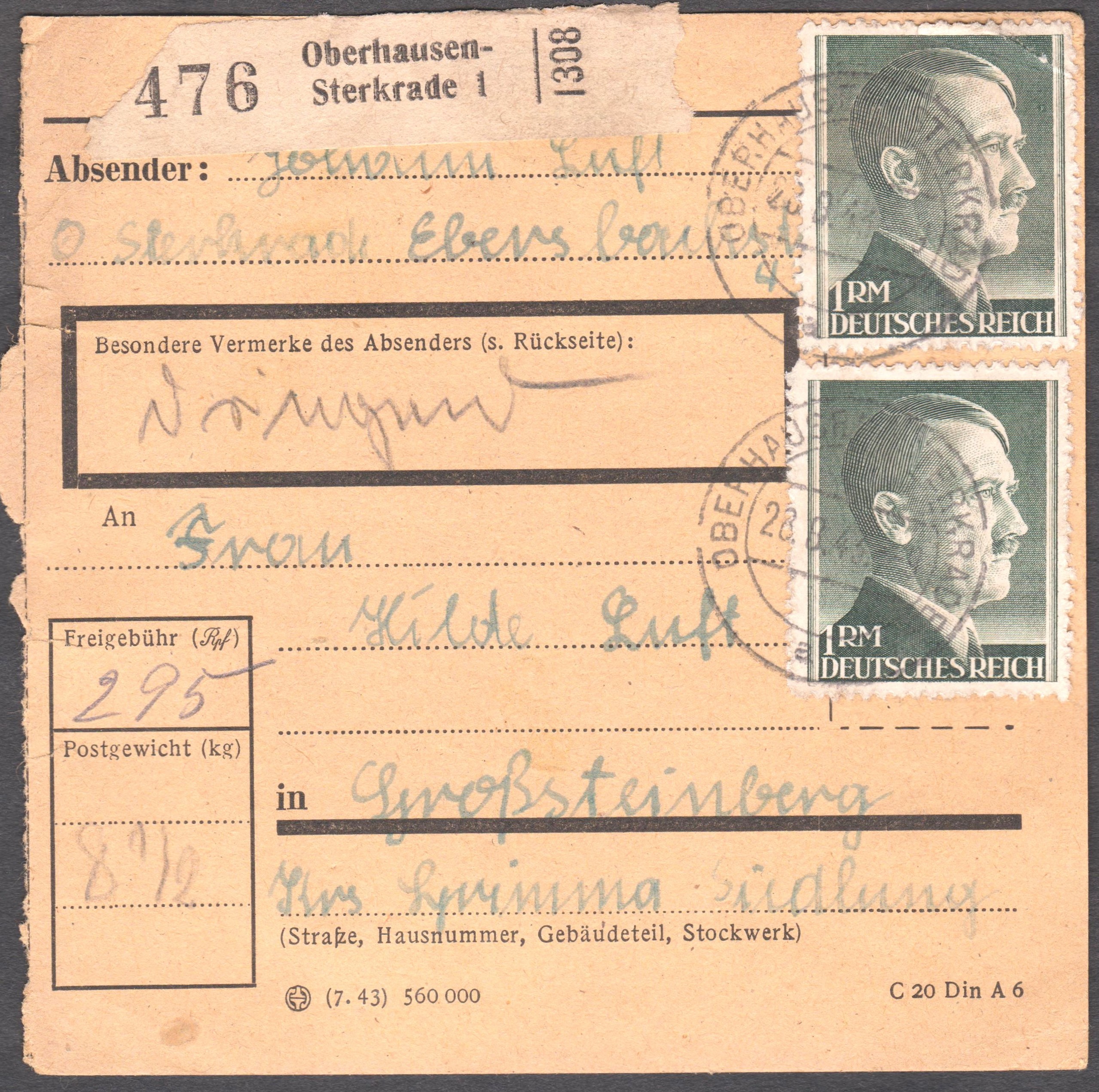 => selten zu findende Portostufe 112 Pf!