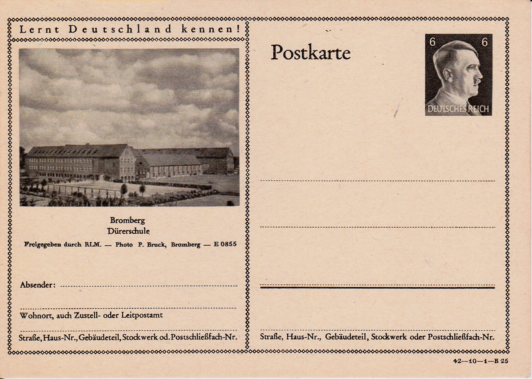 Auf dieser Bildpostkarte (Serie 10 Bild 22) zeigt Bromberg eine Kirche. Bromberg heißt heute Bydgoszcz und ist neben Toruń (Thorn) eine der beiden Hauptstädte der polnischen Woiwodschaft Kujawien-Pommern.