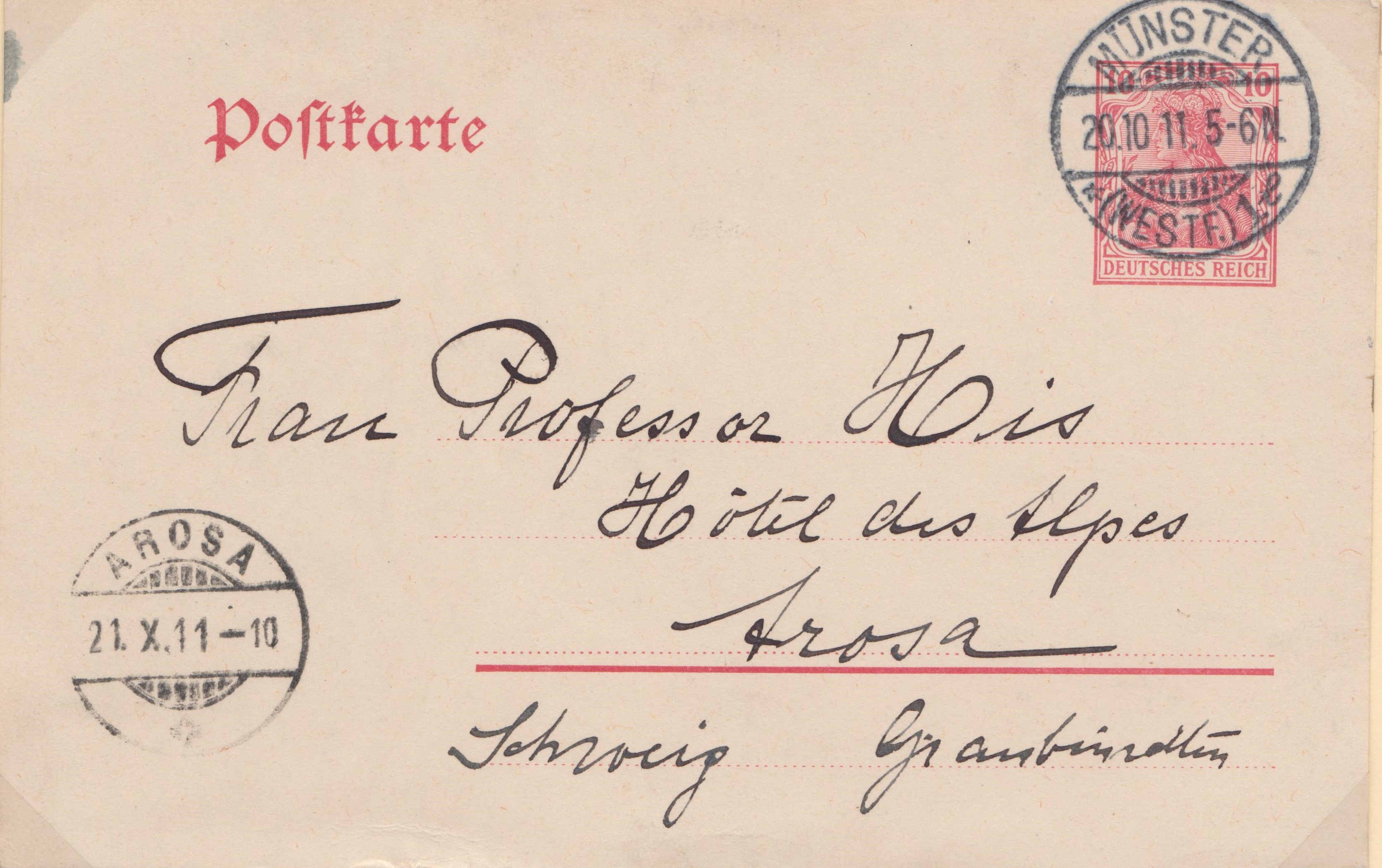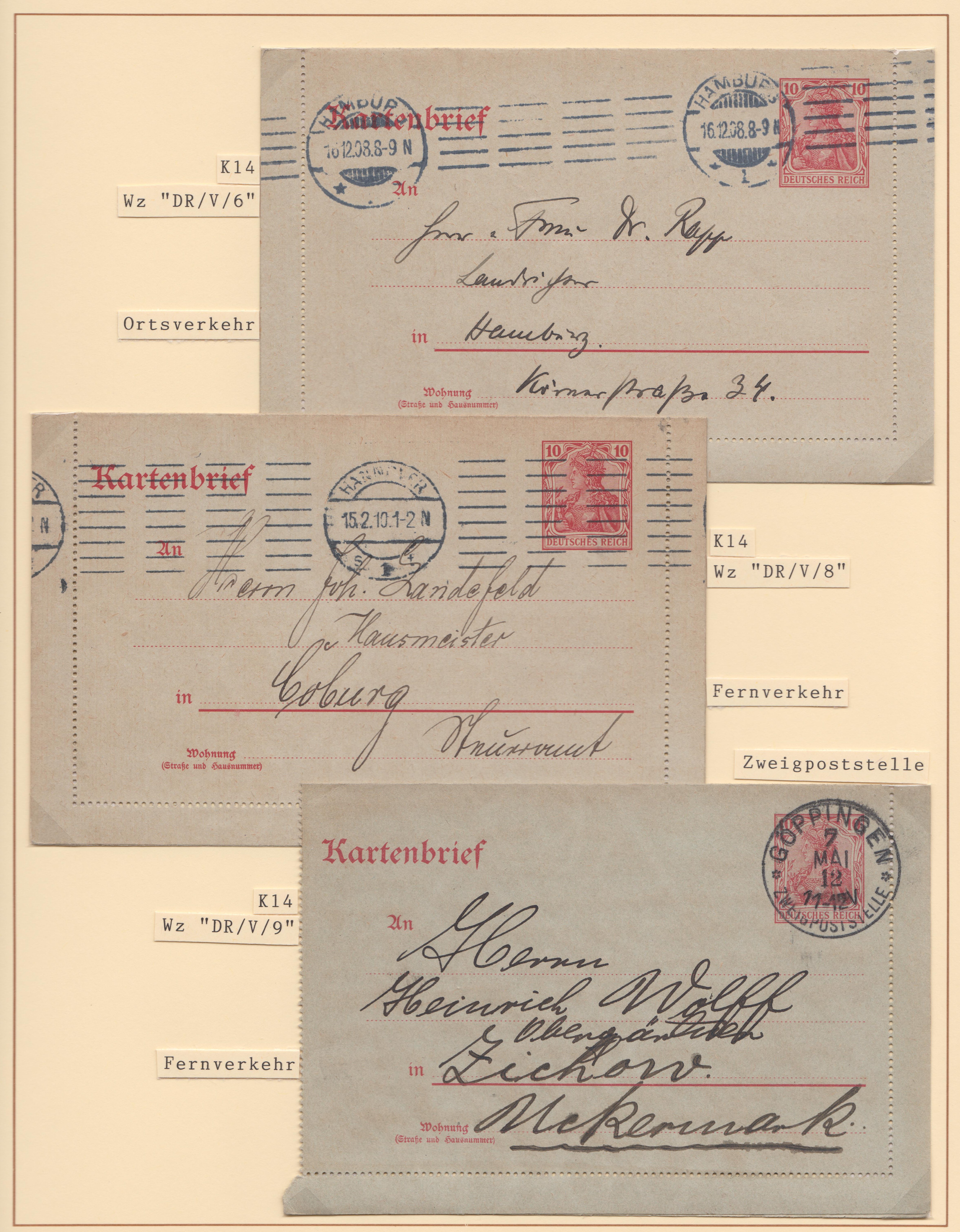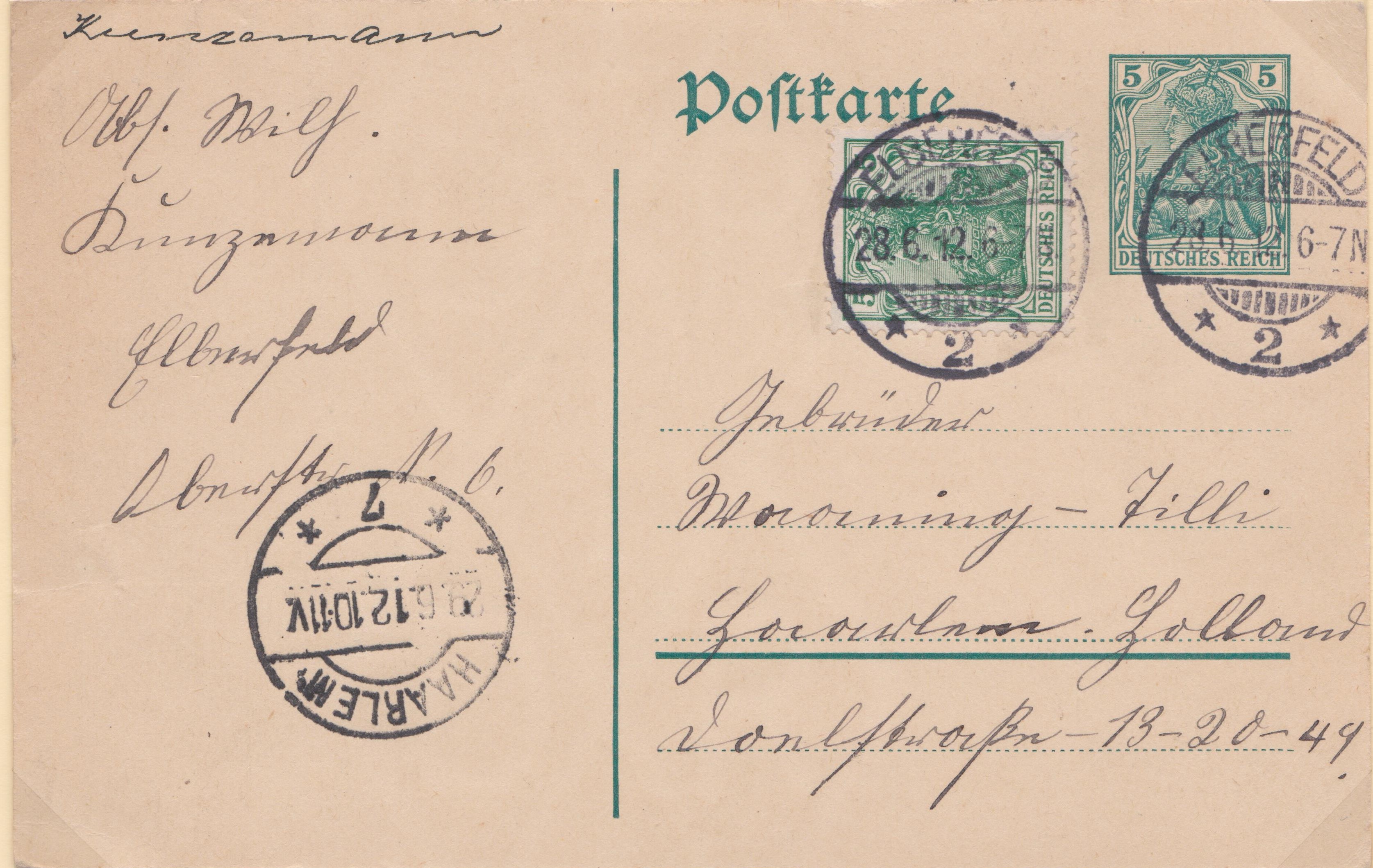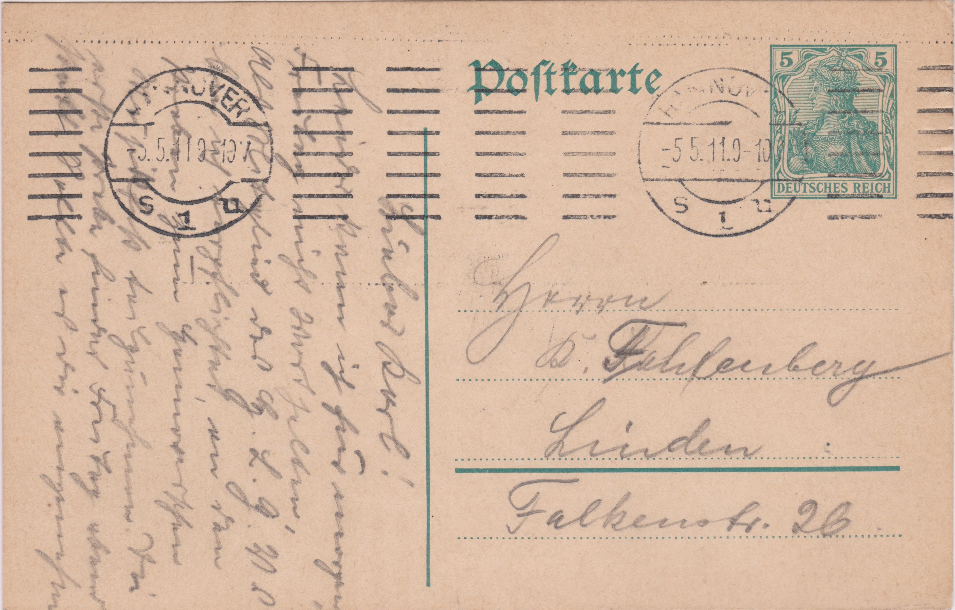 Ganzsache MICHEL P 89 mit eingedrucktem Postwertzeichen Germania 3 Pf und Zusatzfrankatur Germania 5 Pf am 27.04.1913 aufgegeben in STUTTGART, gelaufen nach Giessen: