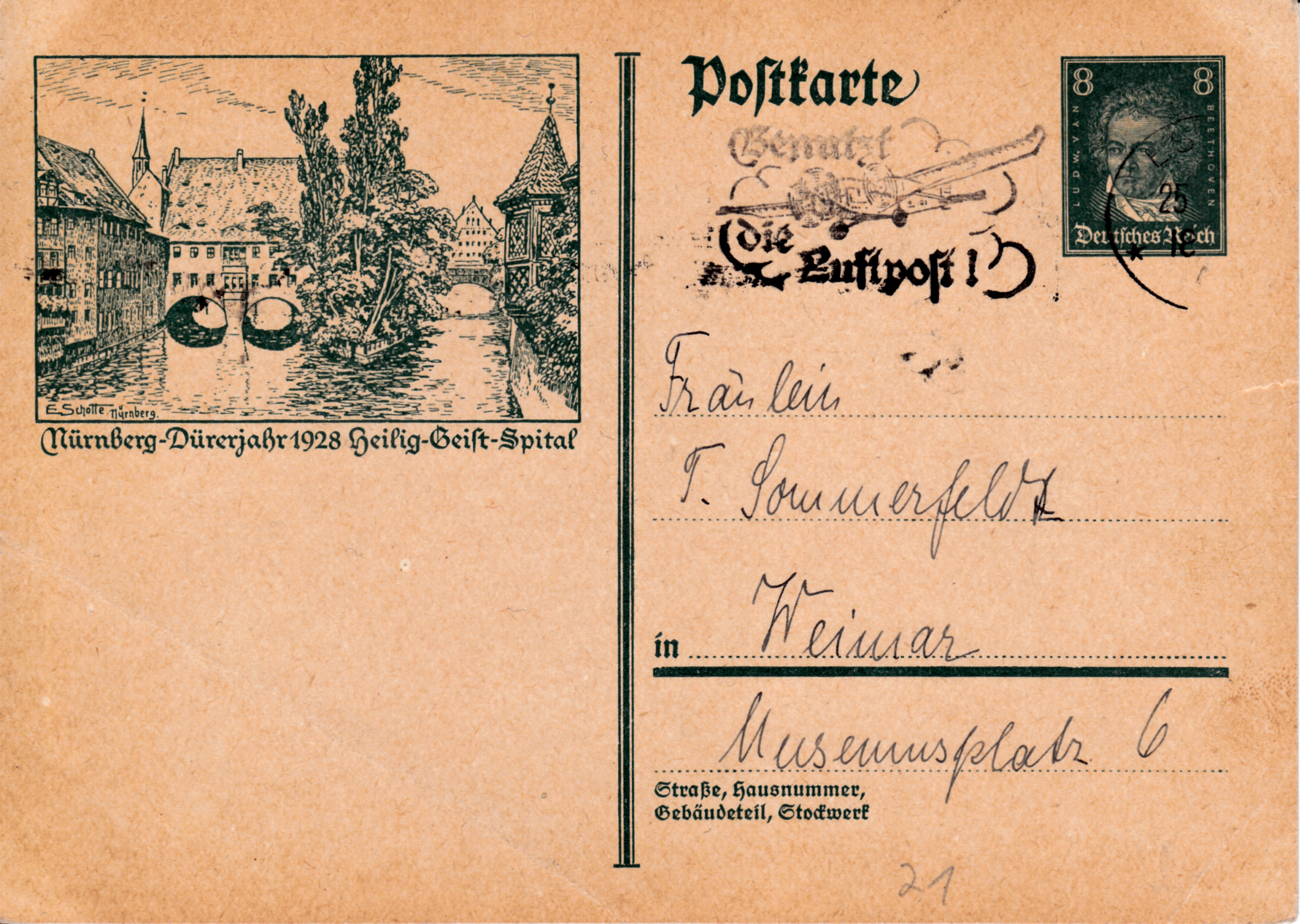 Es gibt noch weitere Bildpostkarten mit Ansichten aus Nürnberg aus Anlass des Dürer-Jahres 1928. Diese Karte (MiNr P 178/21) zeigt das Heilig-Geist-Spital in Nürnberg.