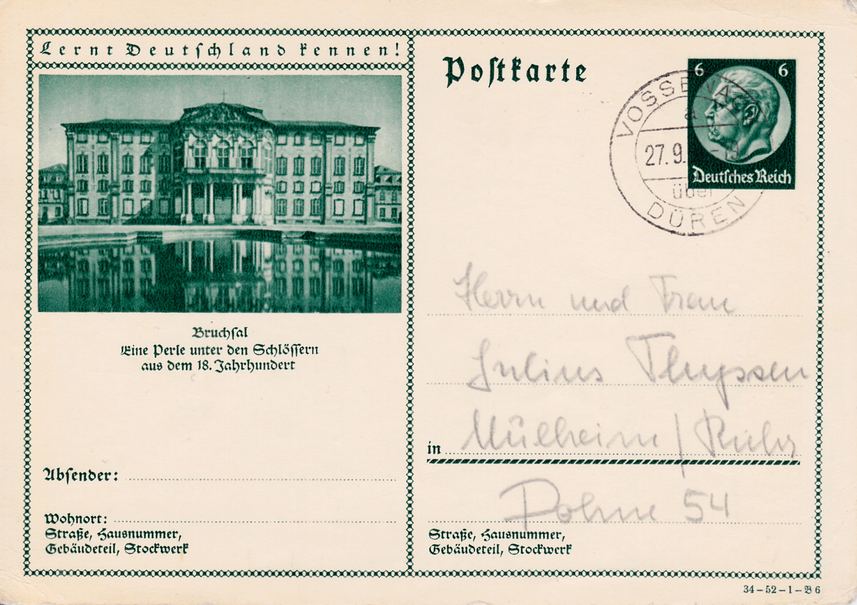 In dieser Serie ist auch wieder eine Bildpostkarte (Serie 52 Bild 6) mit dem Schloss Bruchsal erschienen.