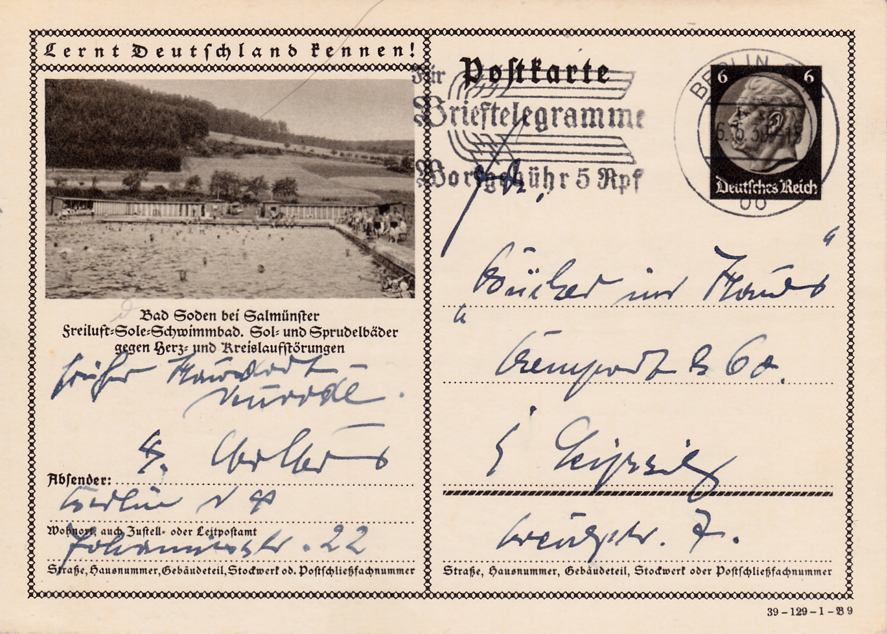 Im Jahre 1939 gibt es auch wieder eine Karte mit einem Foto (Serie 129 Bild 9) aus Bad Soden bei Salmünster. In diesem Jahr wird das Freiluft-Solebad gezeigt.