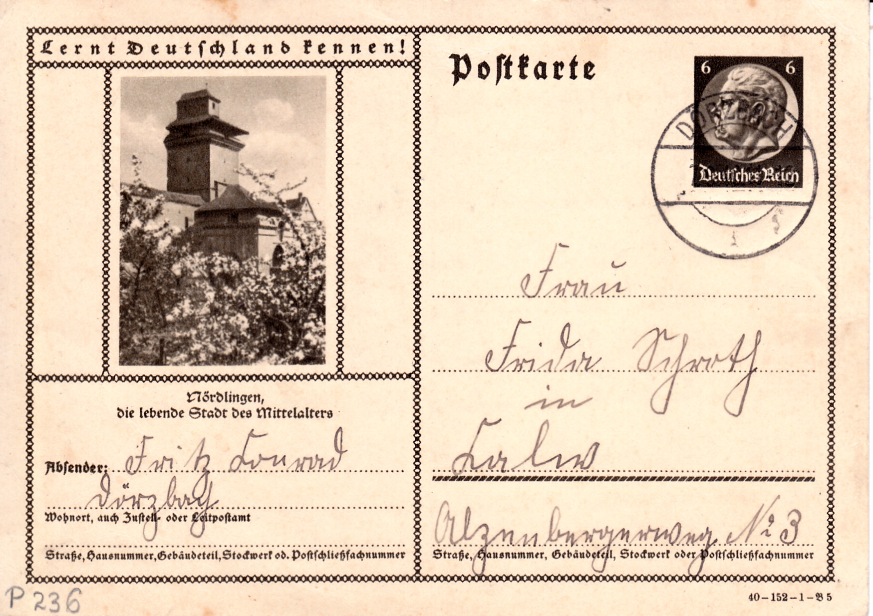 Bildpostkarten Hindenburg P 236 Ausgabe 1940