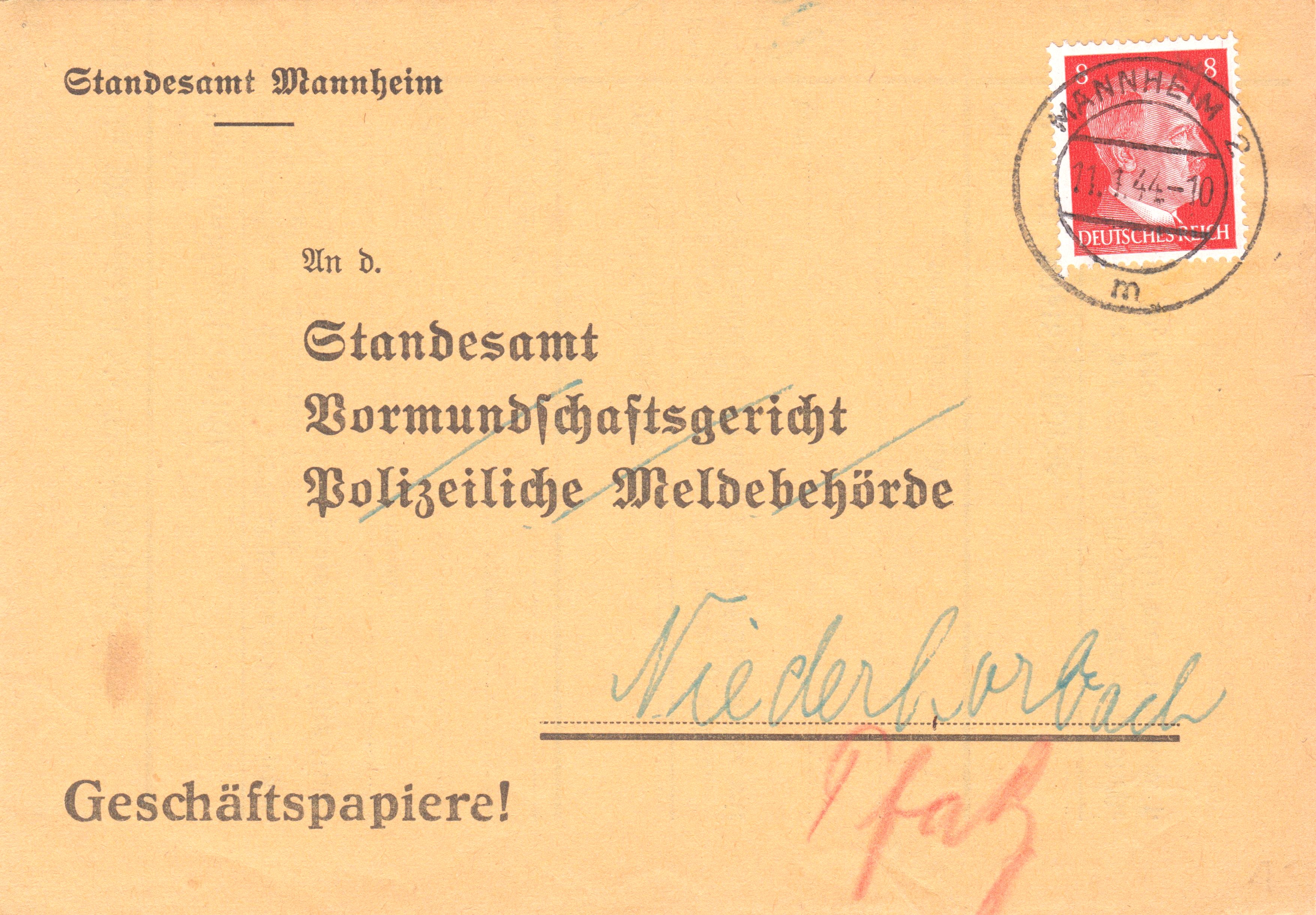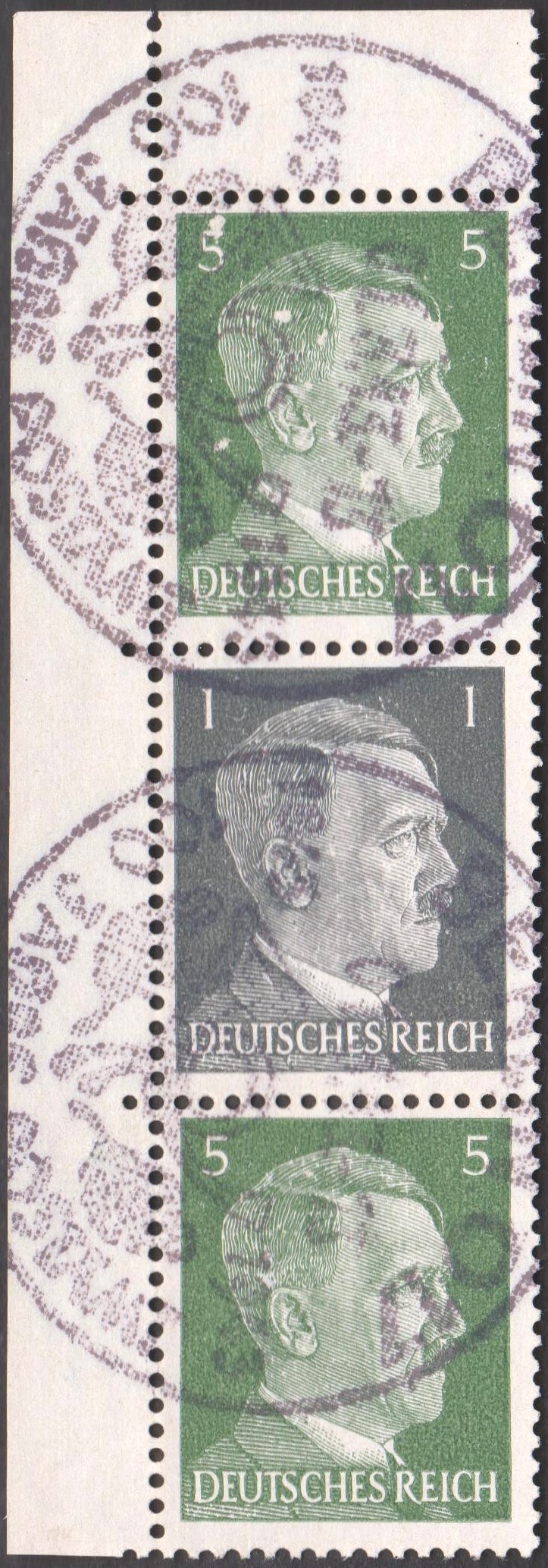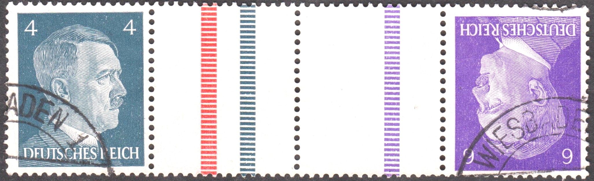 Hier als weiteres Beispiel zwei Postwertzeichen 8 Pf sowie 12 Pf Dauerserie Adolf Hitler mit Aufdruck "STUTTGART" sowie dem Stadtwappen:
