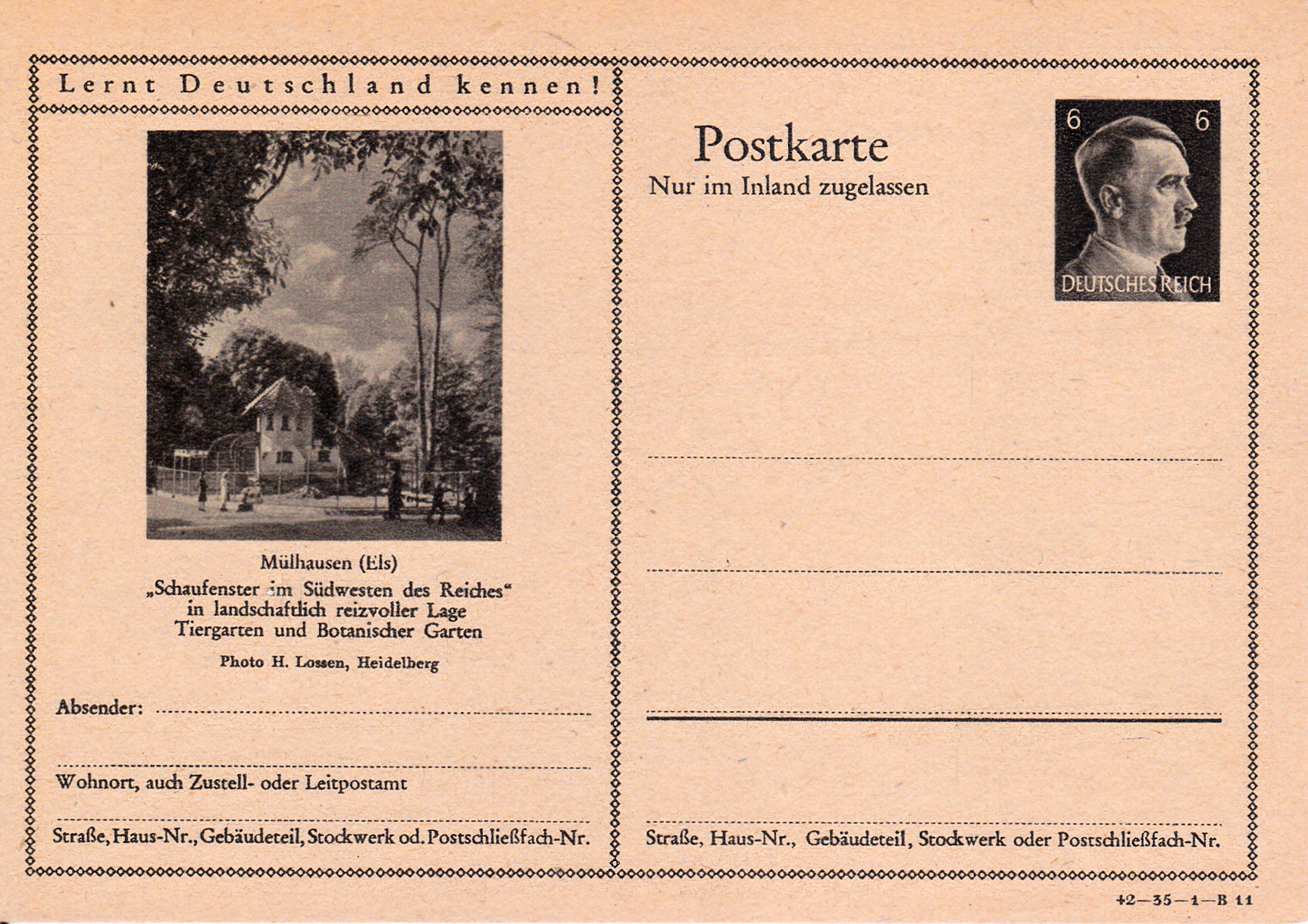 Und es geht weiter mit dieser Karte (Serie 35 Bild 10) und einer Abbildung aus dem Tiergarten und Botanischen Garten in Mülhausen im Elsass.