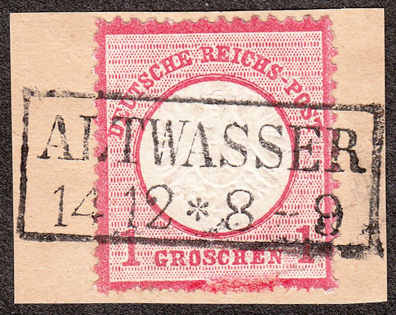Hier eine MiNr. 19 auf Briefstück, entwertet per nachverwendetem preussischem zweizeiligen Rechteckstempel ALTWASSER:
