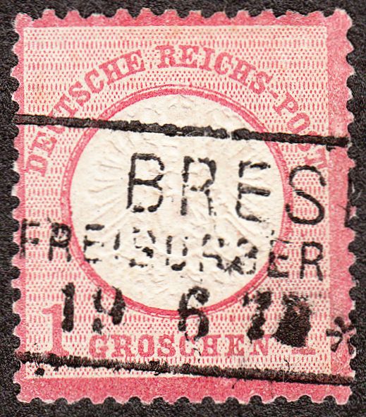 Diese MiNr. 19 wurde entwertet per nachverwendetem preussischem dreizeiligem Rechteckstempel "BRESLAU FREIBURGER BAHNHOF *":