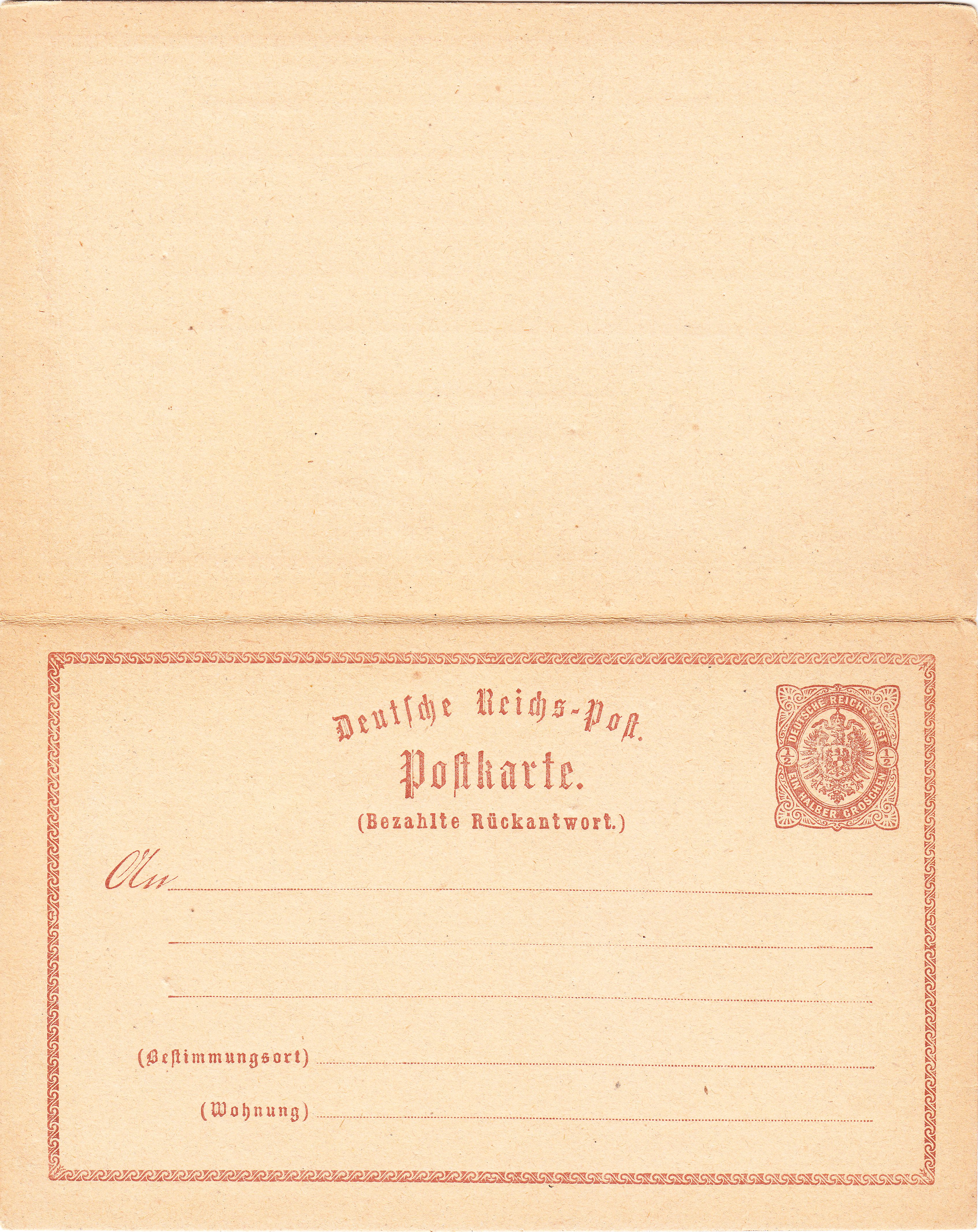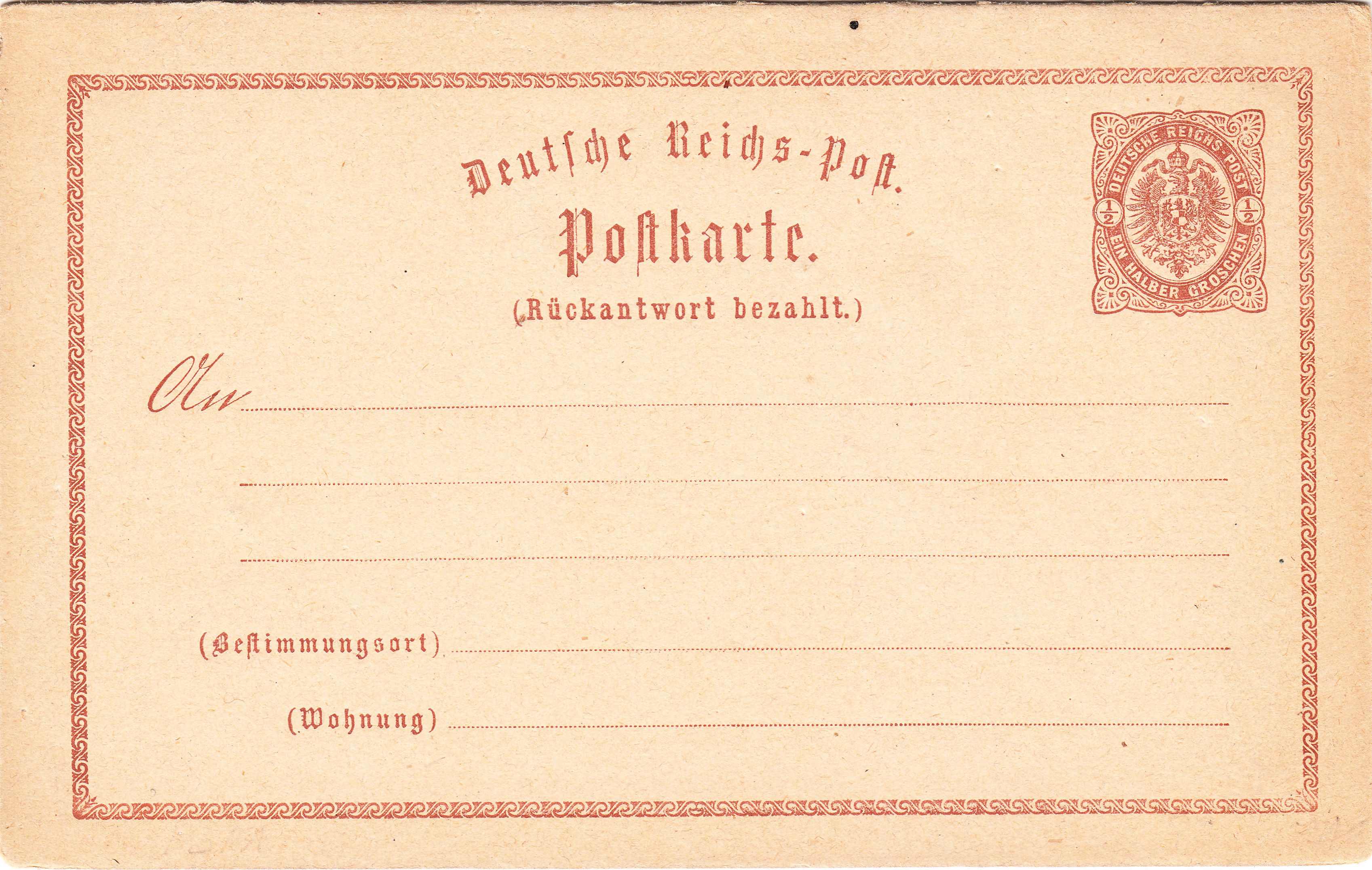 Man kann mit diesem Sammelstück somit belegen, dass dieser Postkartenvordruck im Bogen gedruckt wurde und dass der senkrechte Abstand zwischen den Vordrucken von Zierlinie zu Zierlinie 12 mm betrug.