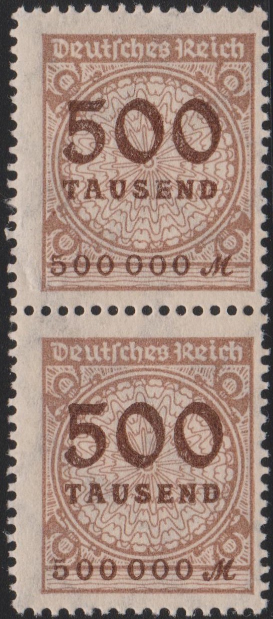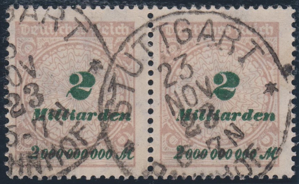 Deutsches Reich MiNr. 326 A P als Paar, mit Tagesstempel Stuttgart vom 23.11.1923: