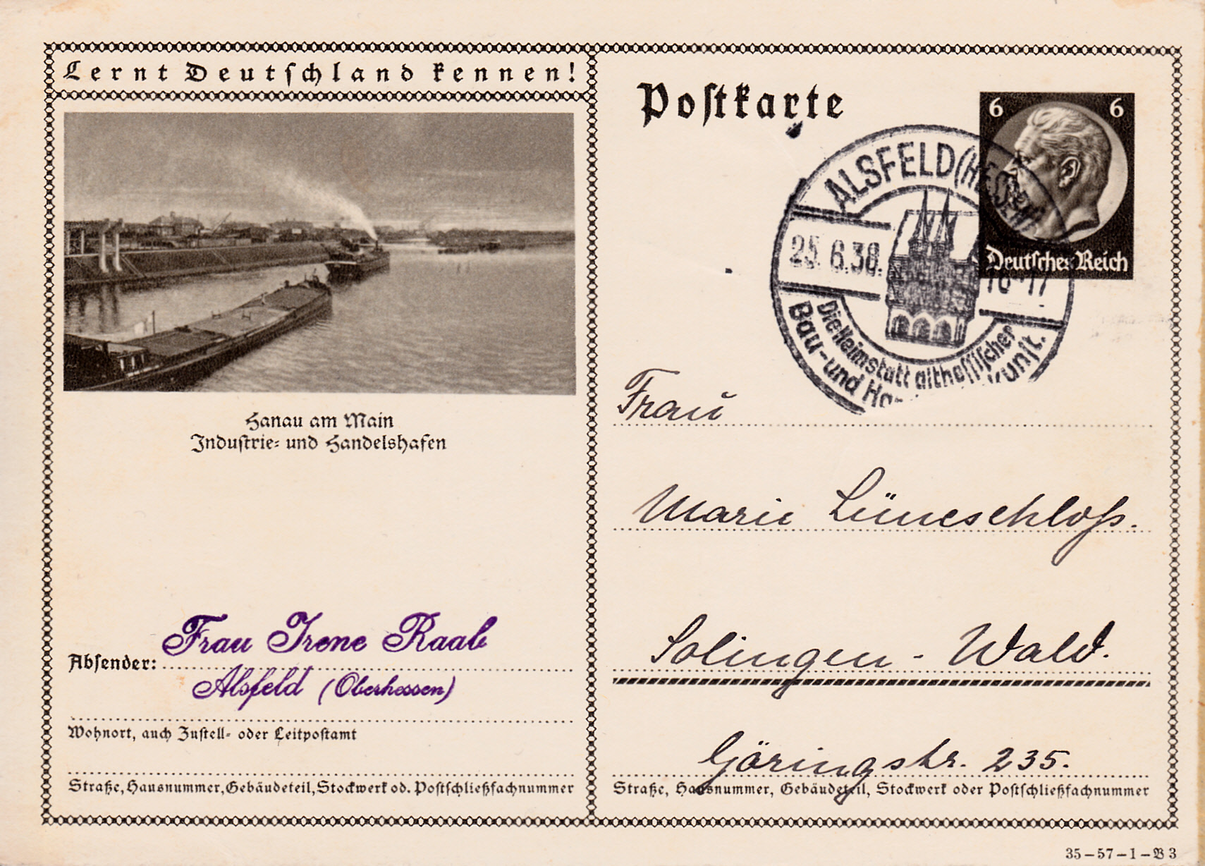 Hanau hat 1935 auch wieder eine Karte (Serie 57 Platte 1 Bild 3) mit dem bereits bekannten Foto aus dem Hafen aus Hanau (Main).