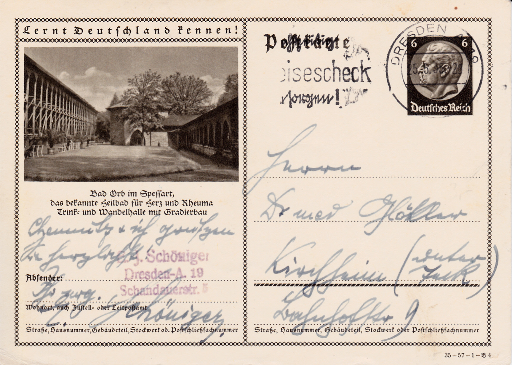 Ich beginne bei der Karte mit dem Druckvermerk "35-57-2-B2" (Ausgabejahr 1935 Serie 57 Platte 2 Bild 2).