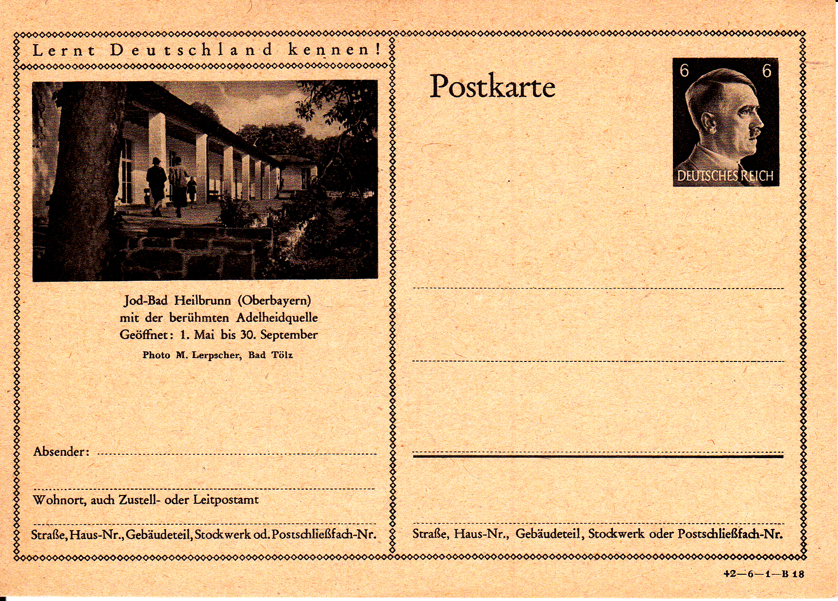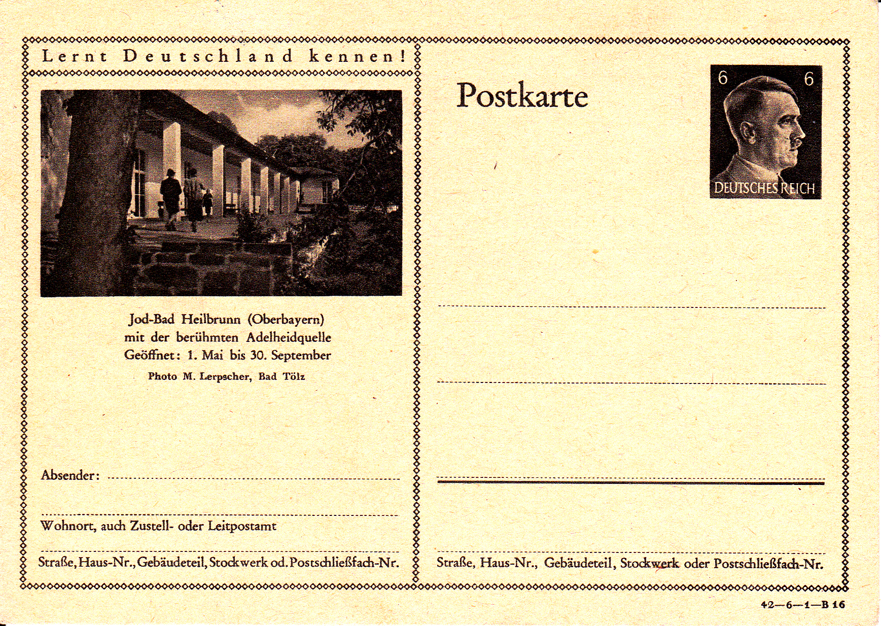 Auch Bad Heilbrunn wiederholt auf dieser Karte (Serie 6 Bild 16) die Abbildung aus den Vorjahren mit der Adelheidquelle.