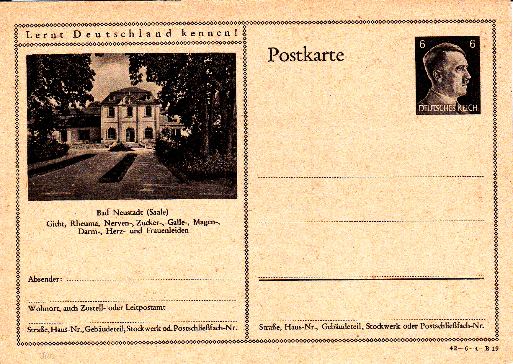 Bad Neustadt an der Saale wirbt mit dieser Bildpostkarte (Serie 6 Bild 19) für sein seine Kuren.