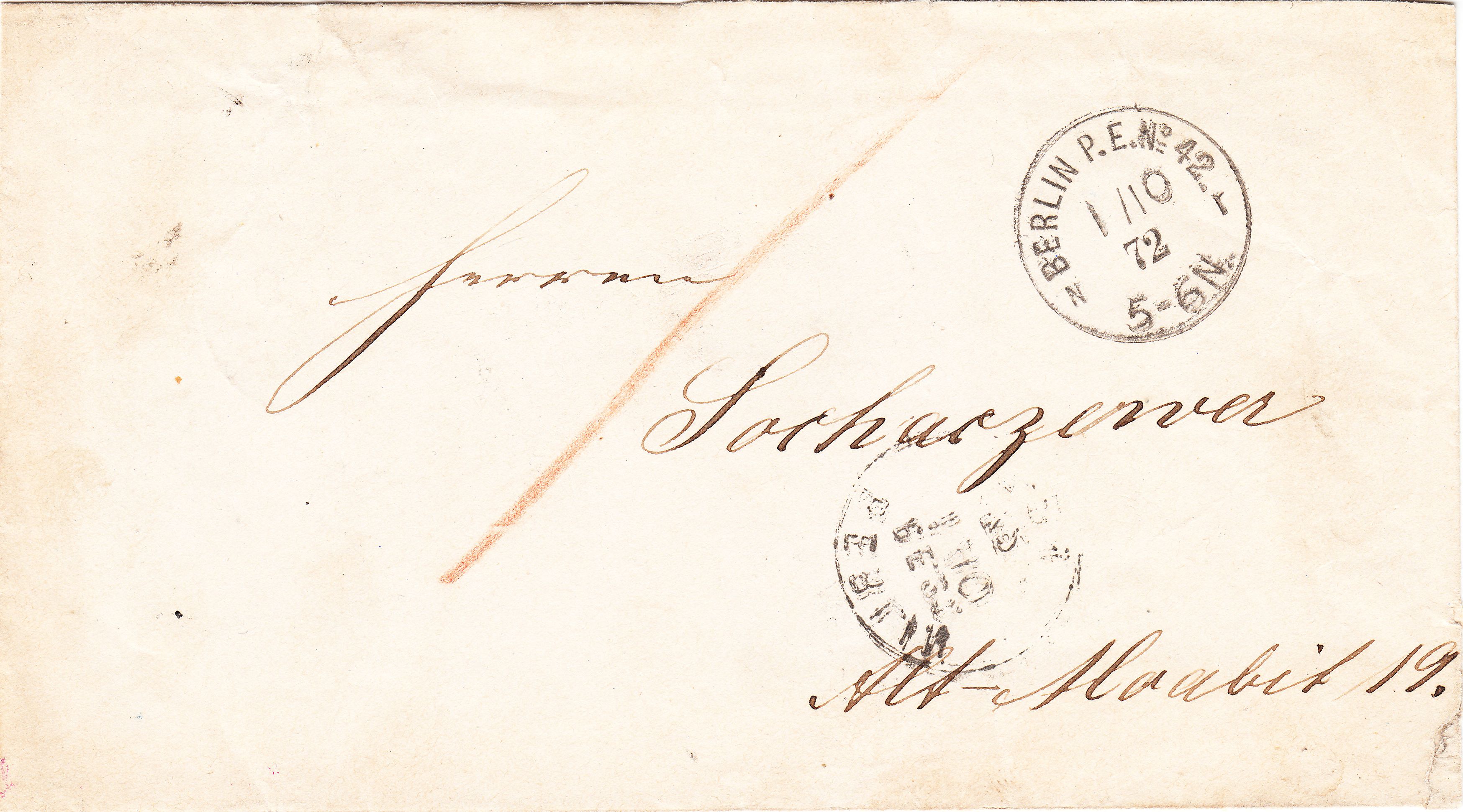 Dieser Brief wurde bei ebay angeboten mit dem Titel "Brief Vorphila Berlin 1872":