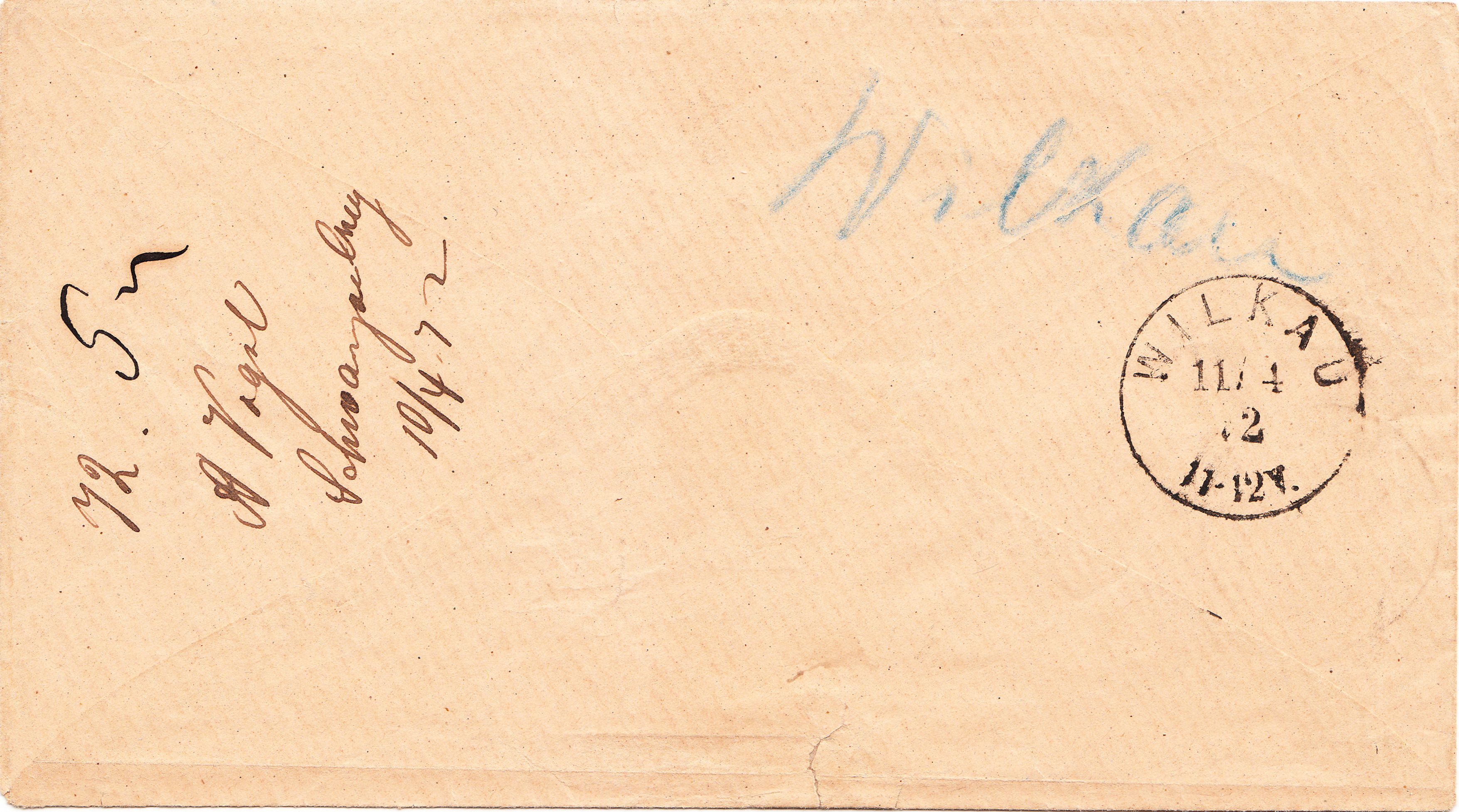 Rückseitig findet sich als Ankunftsstempel ein nachverwendeter sächsischer Zweikreisstempel MEUSELWITZ vom 05.12.1875.