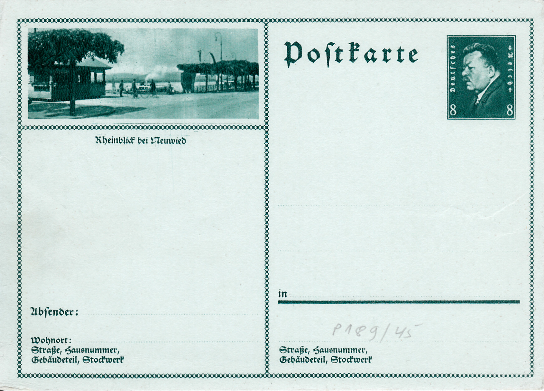 Hier kommt die Bildpostkarte mit der MiNr P 189/45 mit einer Ansicht des Rheinufers bei Neuwied.