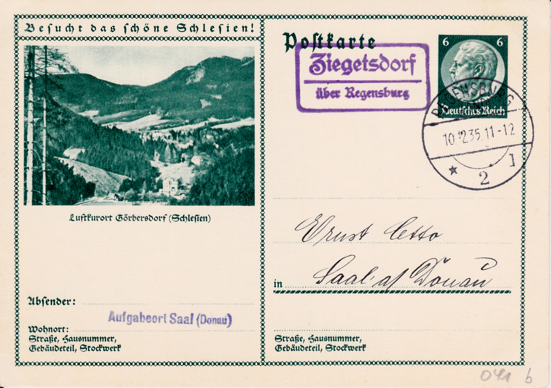 Einen Blick auf Görbersdorf (Schlesien) sehen wir auf dieser Karte (MiNr P 232/41). Das Bild zeigt einen Teil einer Ansichtskarte aus der damaligen Zeit. Görbersdorf heißt heute Sokołowsko und ist ein Dorf im Powiat Wałbrzyski in der Woiwodschaft Niederschlesien in Polen.