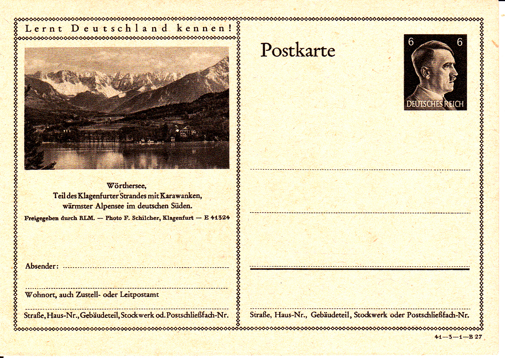 Hier endet der Jahrgang 1941 der Bildpostkarte MiNr P 305.