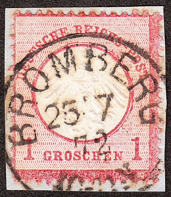 Diese als Briefstück erhaltene MiNr. 4 wurde am 25.07.1872 entwertet per Kreisstempel BROMBERG: