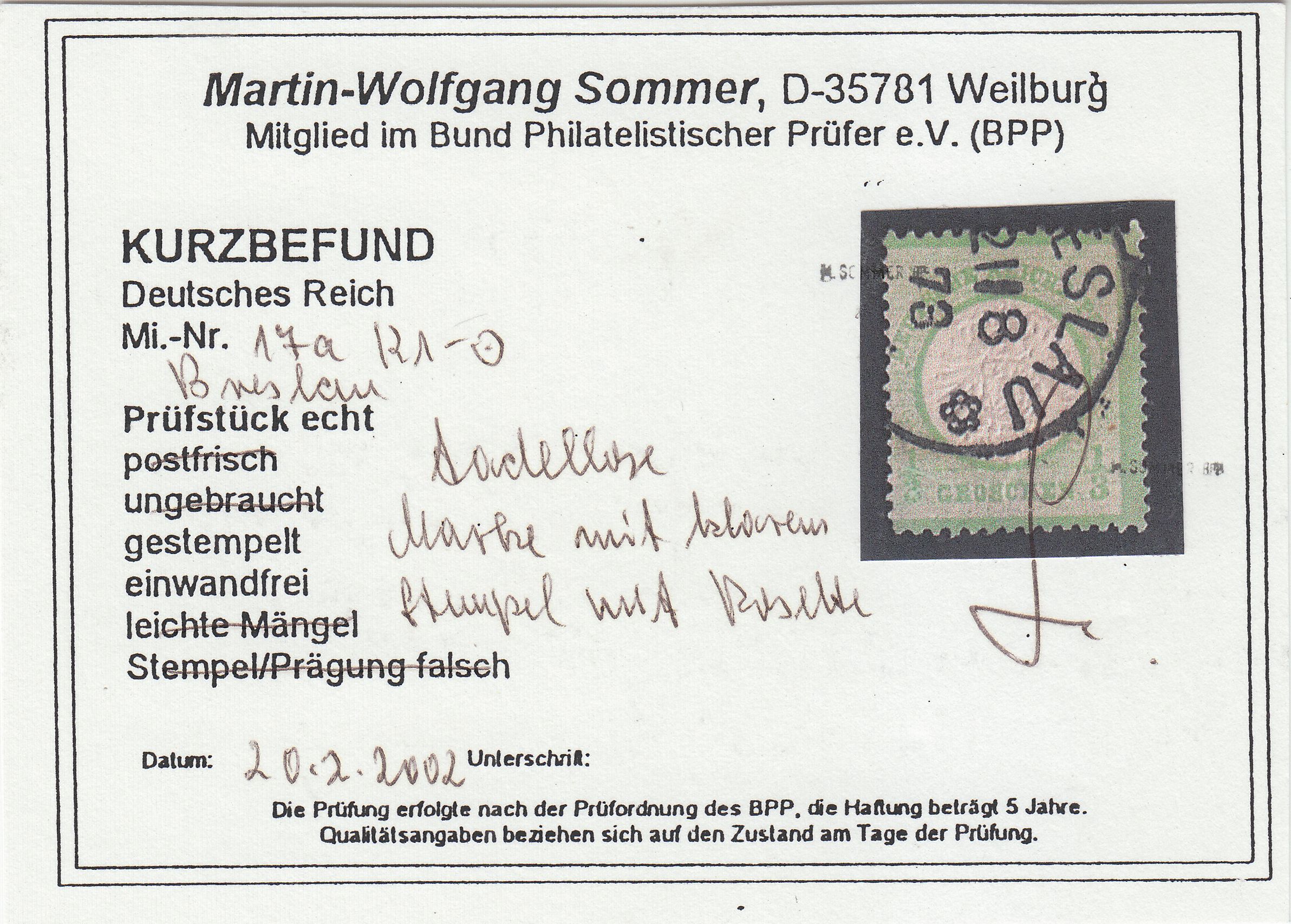 https://www.ebay.de/itm/99369-Ostgebiet ... 2749.l2649Man erkennt sofort, dass die Faltung dieses Belegs so nicht original sein kann, denn der in Gostyn angebrachte Ausgabestempel gehört auf die Rückseite des Beleges. Bei dem geringen Preis habe ich mich dennoch getraut, dieses Exemplar zu erstehen.