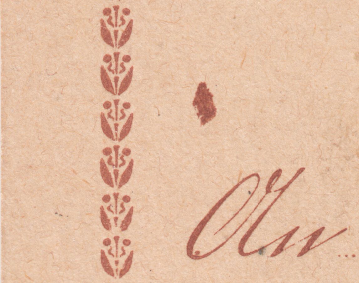 Als Druckbesonderheit zeigt dieses Exemplar einen markanten Fleck in der Druckfarbe über dem "An":